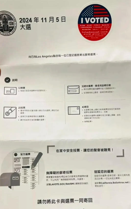 原来美国选票长这样,和想象中完全不一样,关键还有中文版本,也就是说部分唐人街的美籍华人收到的选票是中文版本的,只不过目前只有繁体字这个版本,这也说明华人在美国的影响力越来越大,未来说不定就有简体中文版的选票。