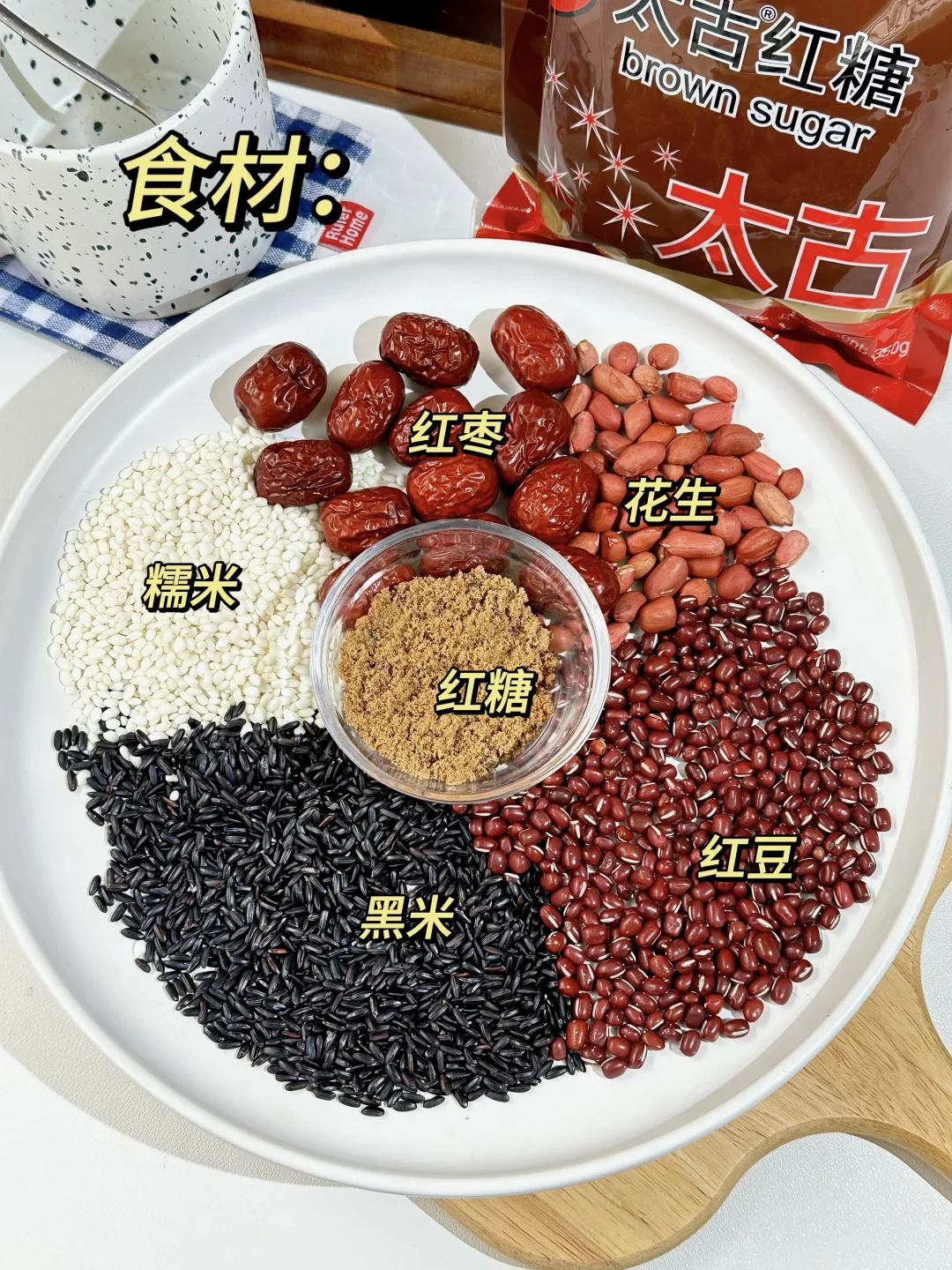 ✅食材准备:太古红糖+红枣+花生+黑米+红豆+糯米