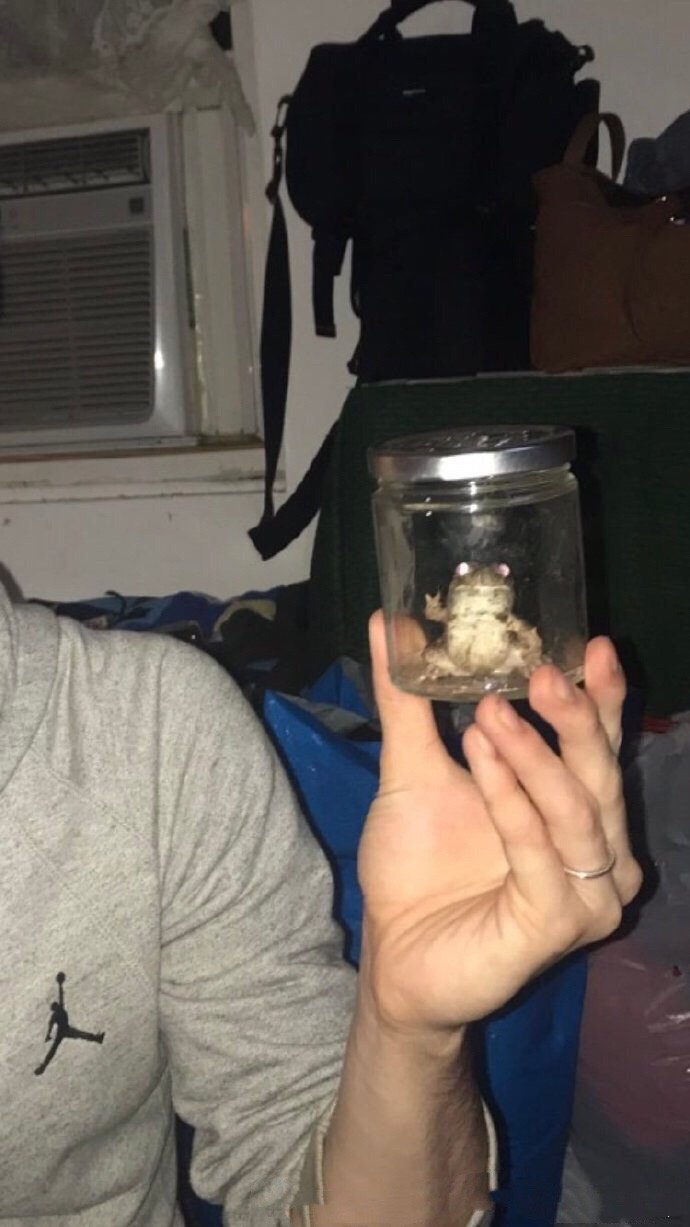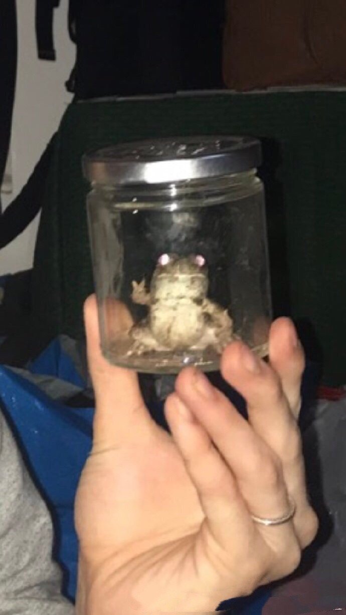 网友花了一个小时在外面水坑找到了那只吵得要死的青蛙。然后他把抓到的青蛙放到玻璃杯里合影的时候,结果竟然看到?