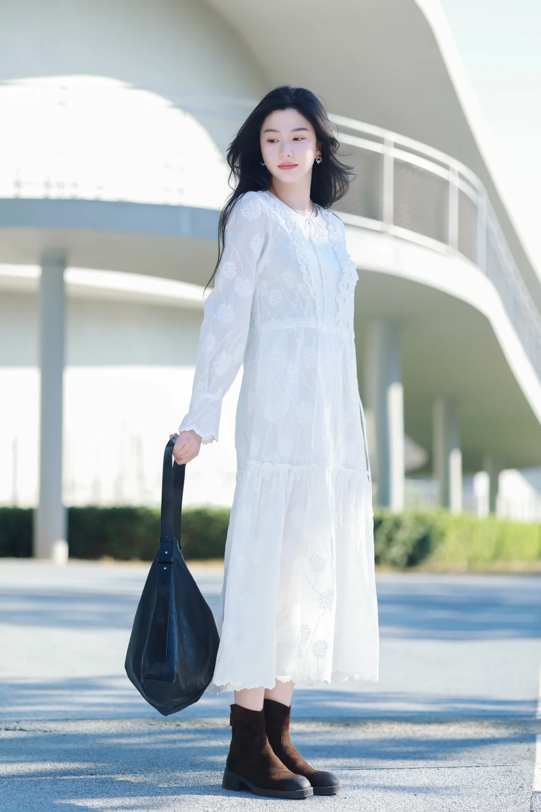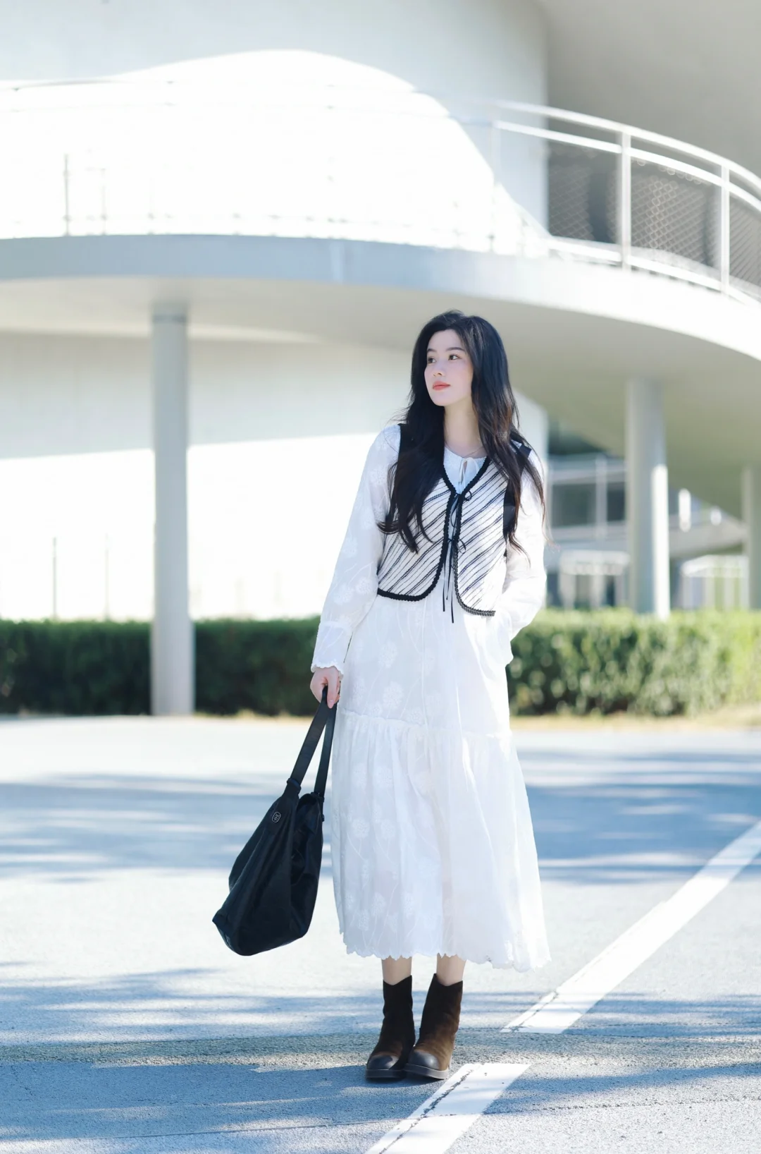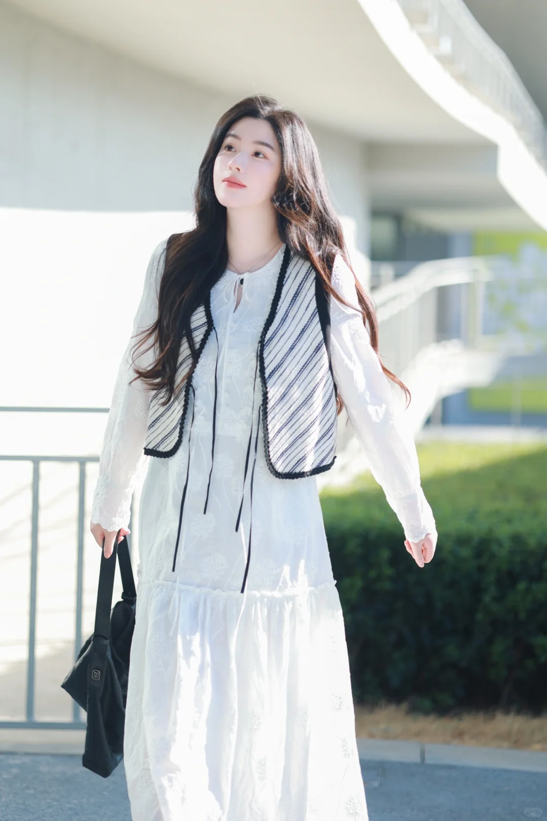 喜欢今天的花朵白裙。这些散落的花朵,或含苞待放,或盛开正艳,错落有致地分布在裙摆之间,写满秋日浪漫。 也喜欢搭配一件条纹小马甲,既有种gentlewomen即视感,心里住着一位城市旅者。