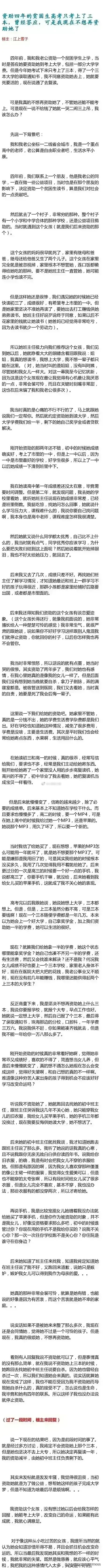 资助四年的贫困女孩只考上了三本,现在不想资助了,女孩就要死要活的,搞的不知怎么办了
