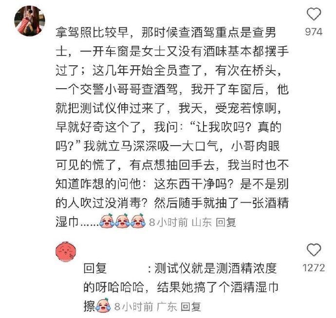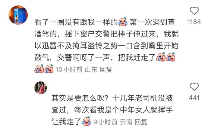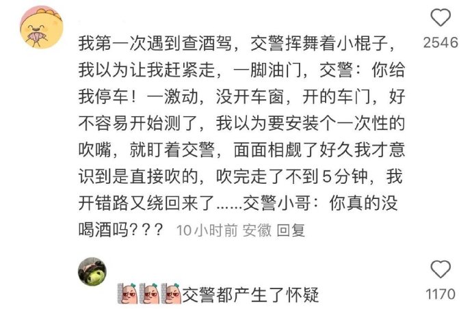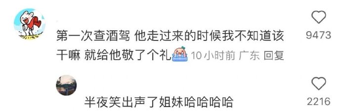 第一次查酒驾 他走过来的时候 我不知道该干嘛 就给他敬了个礼