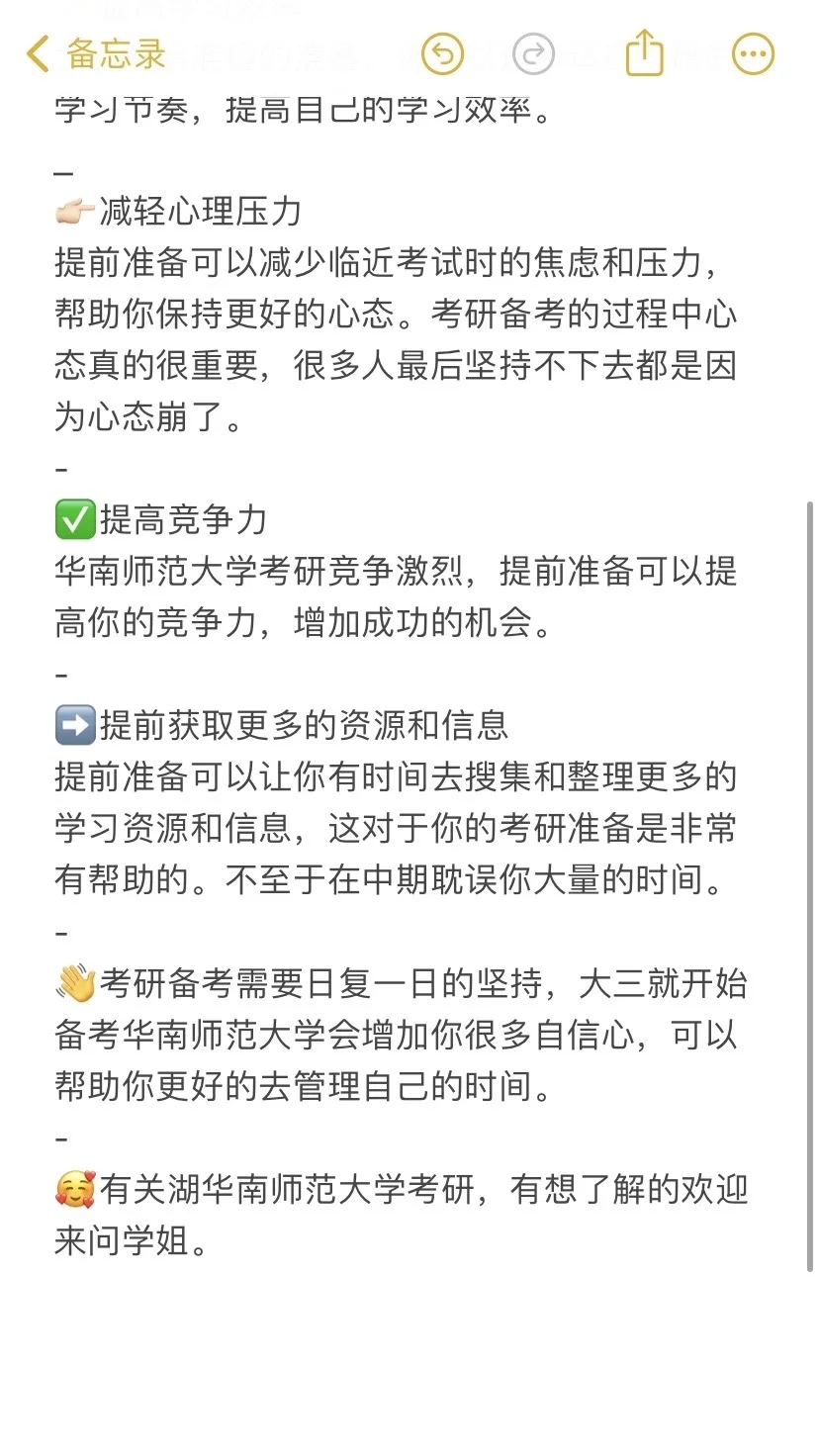 👋考研备考需要日复一日的坚持,大三就开始备考华南师范大学会增加你很多自信心,可以帮助你更好的去管理自己的时间。