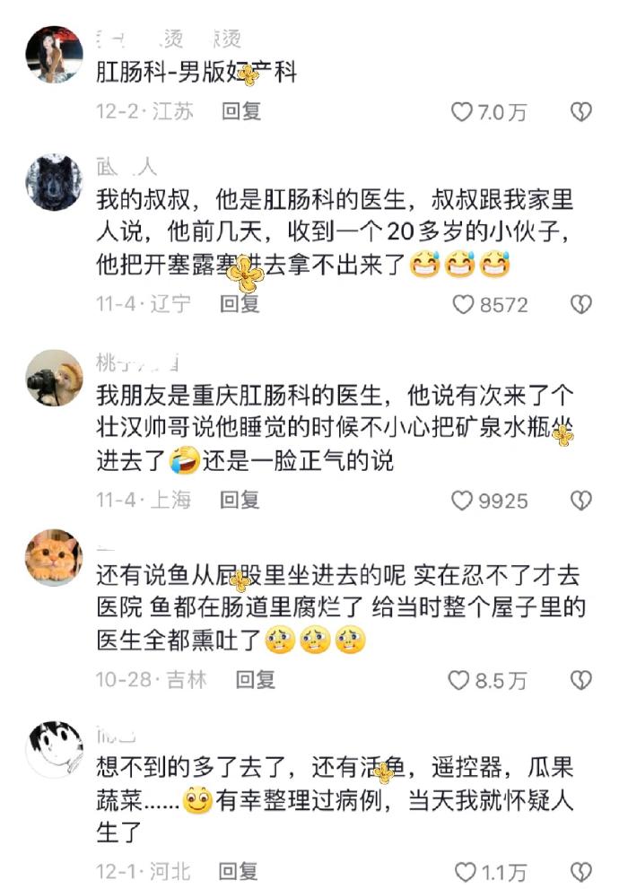 想不到的多了去了,还有活鱼,遥控器,瓜果蔬菜,多有幸整理过病例,当天我就怀疑人生了。