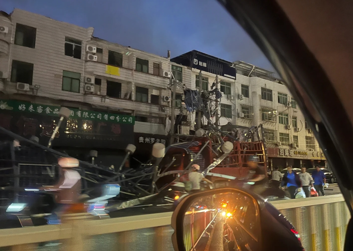 见识到康妮的厉害了 直接把楼顶的太阳能吹掉下来,砸在路线灯杆,车上面,太猛了。
