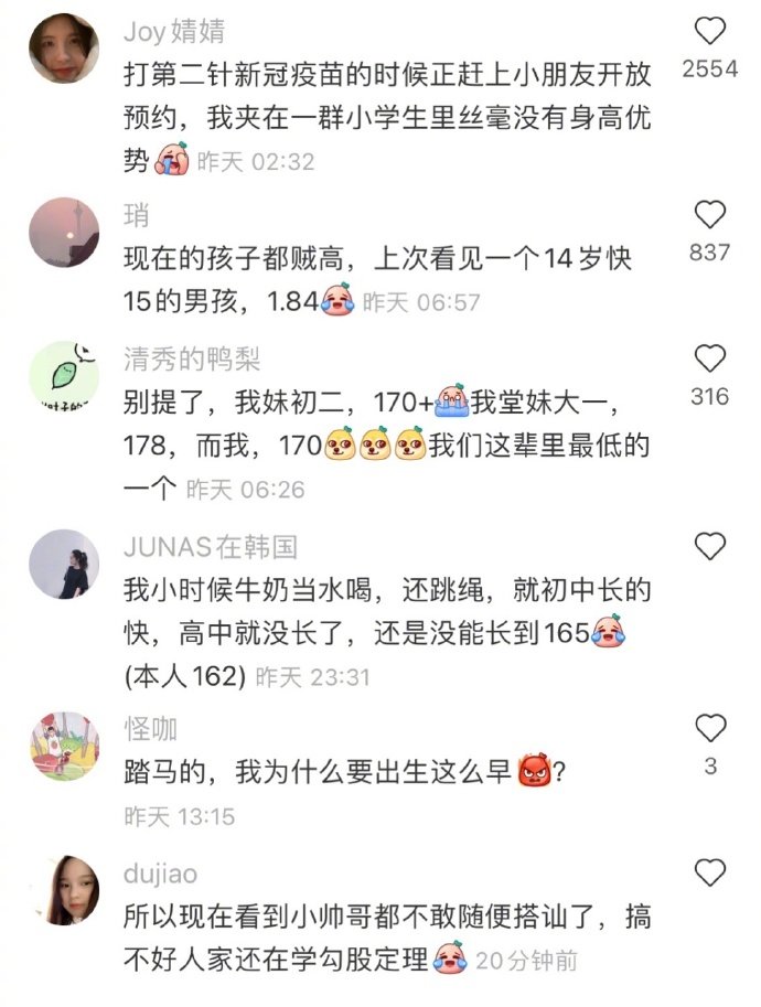 别提了,我妹初二170+,我堂妹大一178,而我170多,我们这辈里最低的一个。