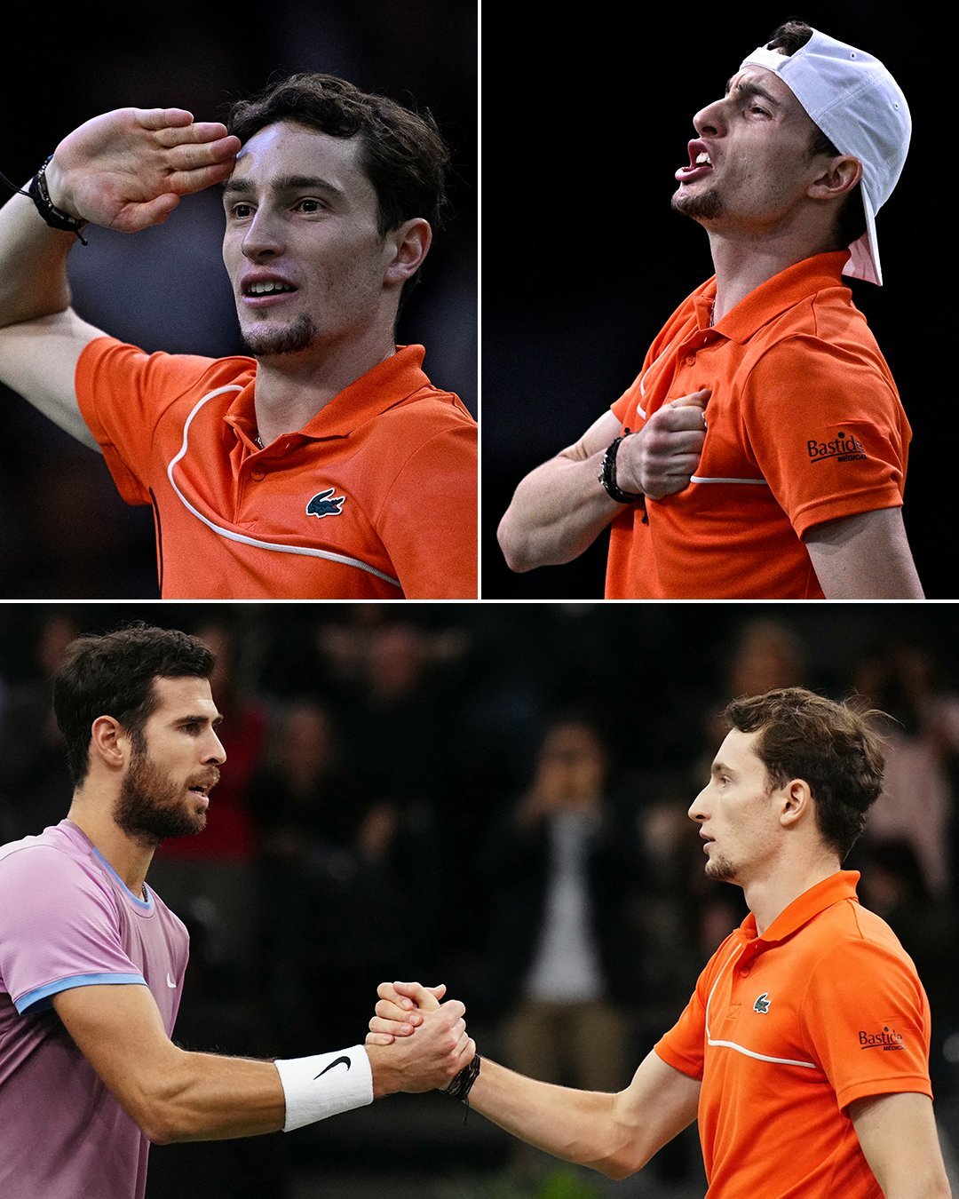 安贝尔在半决赛压力太大,直到决胜盘卡恰诺夫大腿拉伤后才锁定胜局,由于是第一次进大师赛决赛还是在自己的第二故乡巴黎,小伙子忍不住庆祝却被卡恰在网前“教育”,只能说,你俩都有理[喵喵]