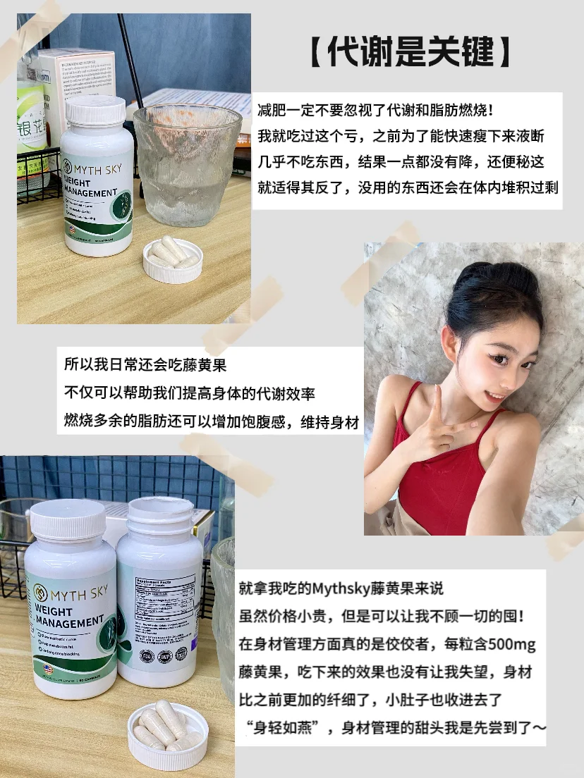 就拿我吃的Mythsky藤黄果来说,虽然价格小贵,但是可以让我不顾一切的囤!在身材管理方面真的是佼佼者,每天坚持两粒,吃下来的效果也没有让我失望,身材比之前更加的纤细了,小肚子也收进去了,现在的代谢一直保持在一个比较高的水平,噗噗规律,偶尔放纵多吃了一点一下也不会复胖,现在就是一整个“身轻如燕”~