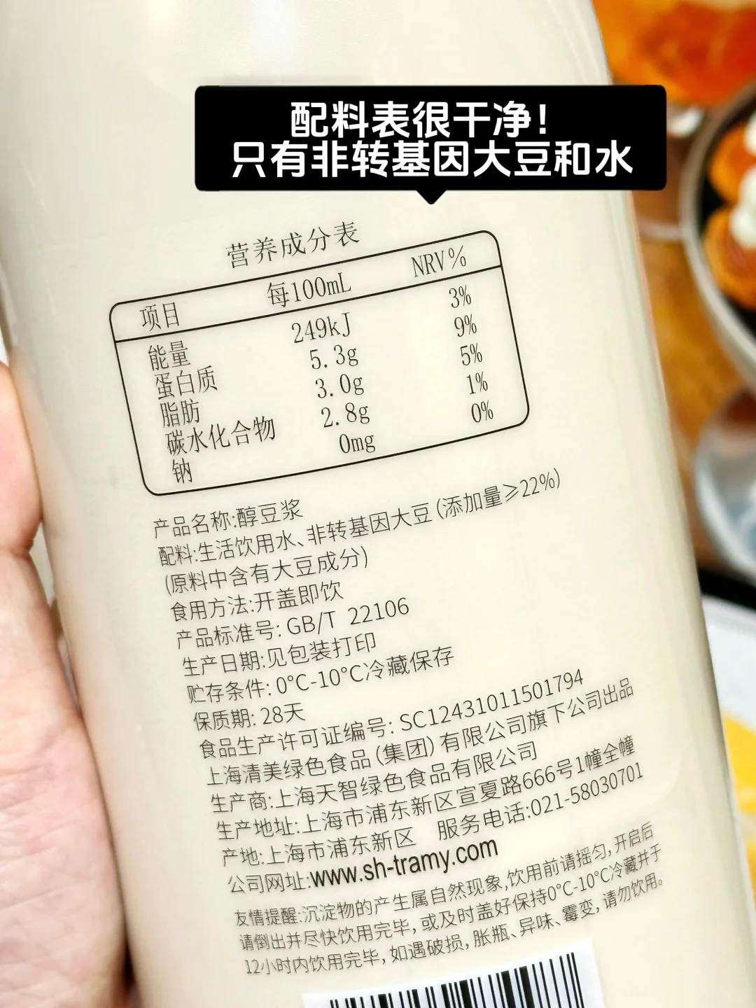 看了配料表才知道没有加糖诶!只有水和非转基因大豆,喝多了也不会腻~就很适合咱们健身又控糖的姐妹们~而且蛋白质含量远高于普通牛乳哦!