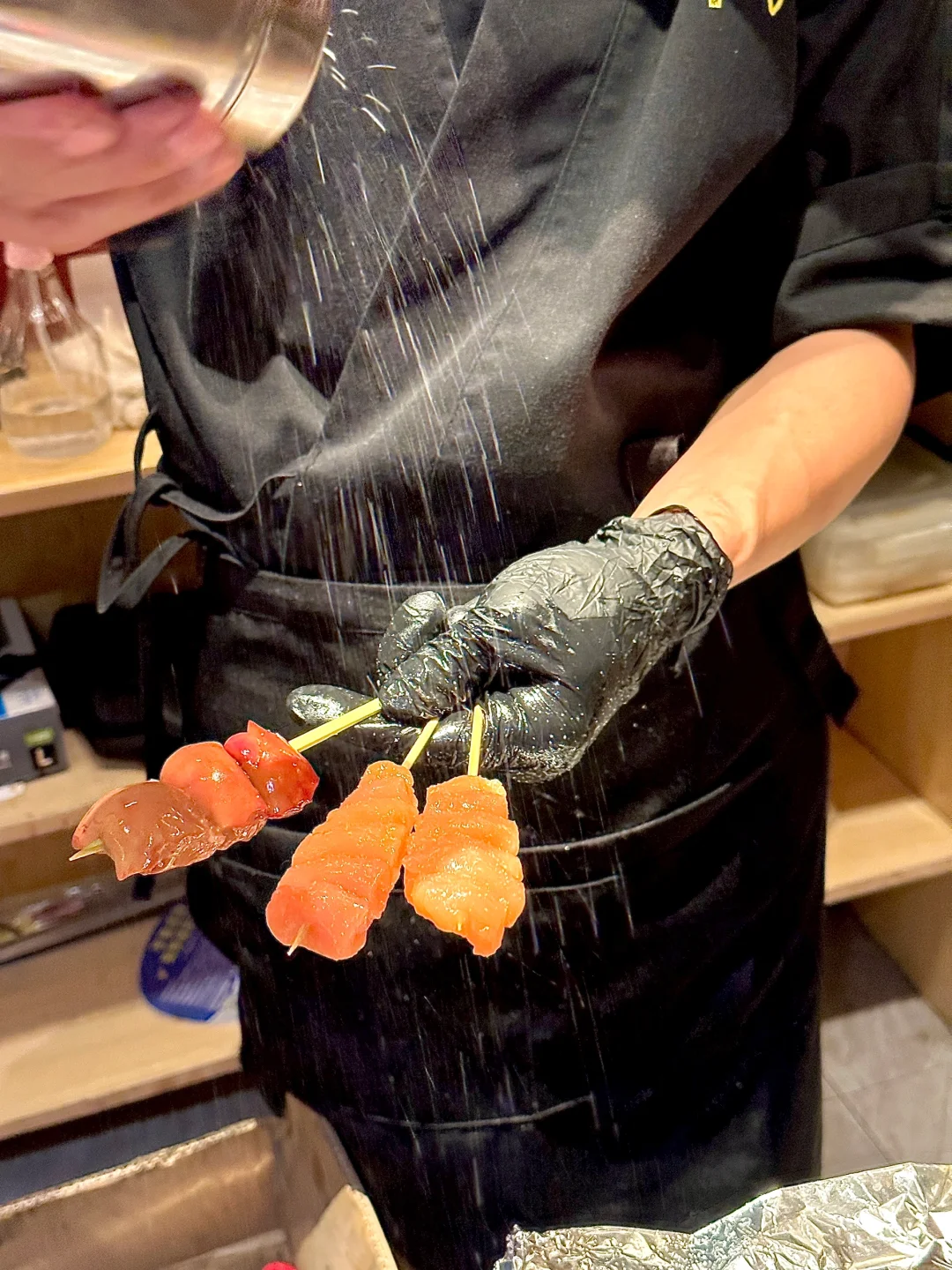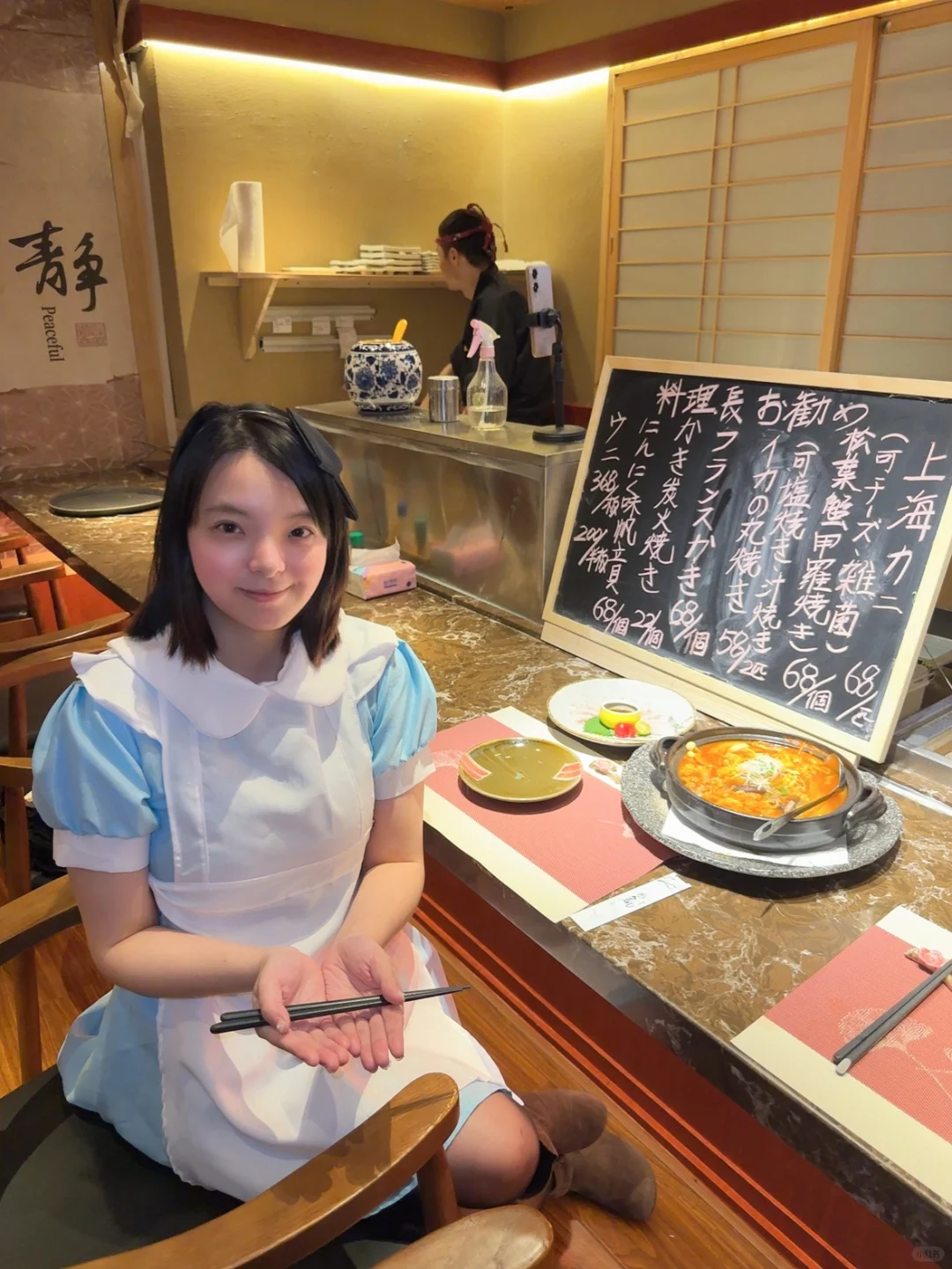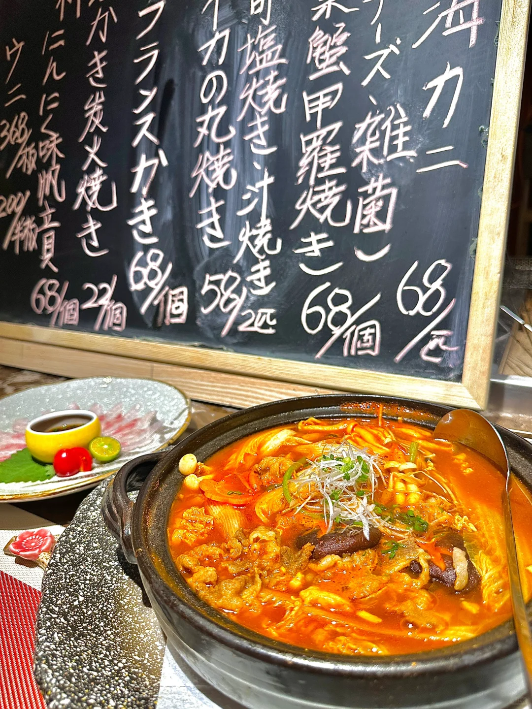 林和西开到凌晨四点的日料店,这里的日式居酒屋暖光装修,进门就感到温馨上下两层楼,这里除了卡座、榻榻米包厢,还有板前的位置,日语手写菜单,可以近距离观看师傅制作烧鸟或者炉端烧,