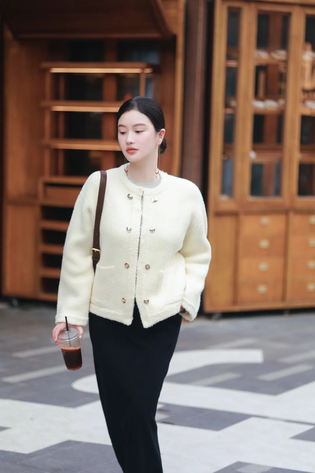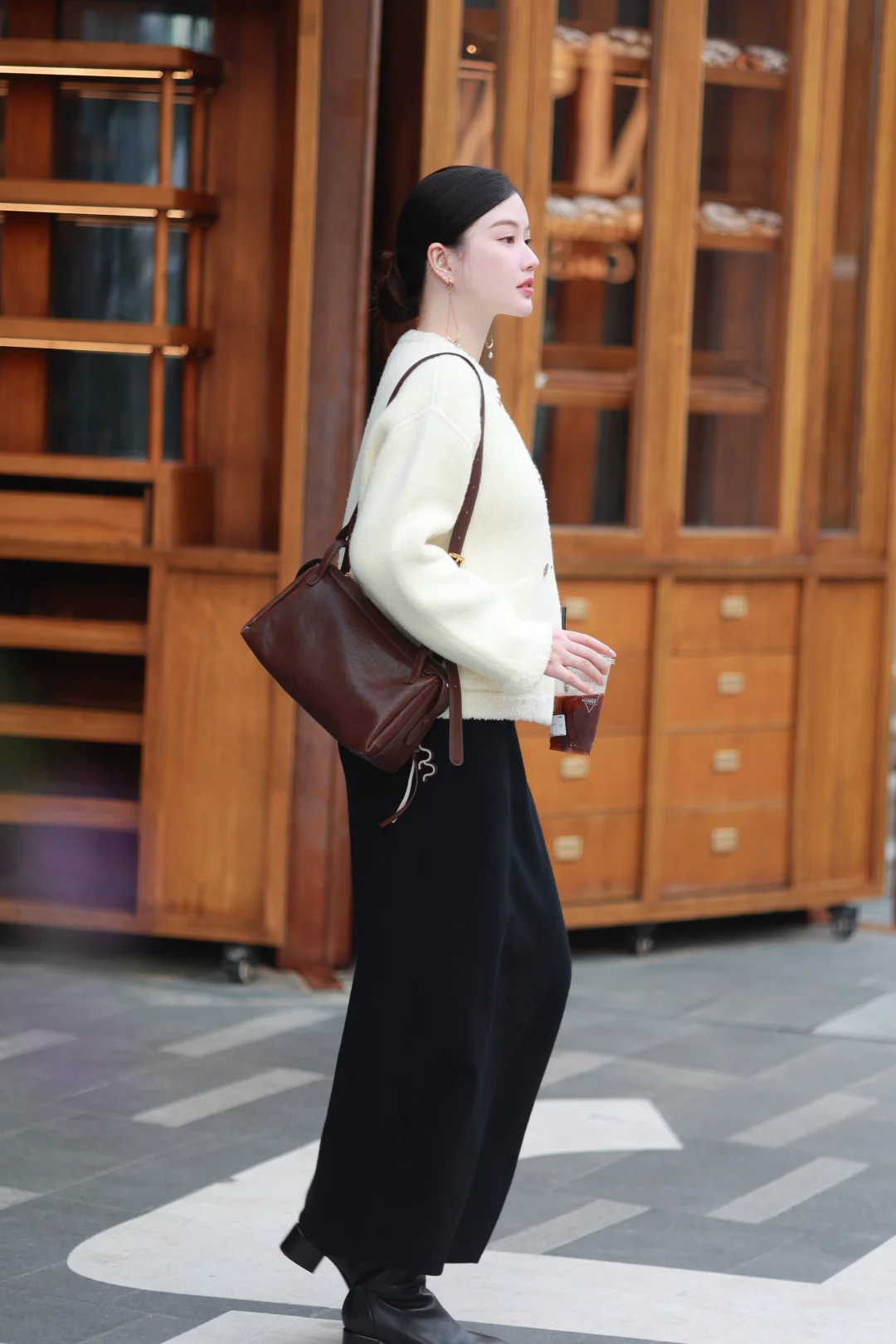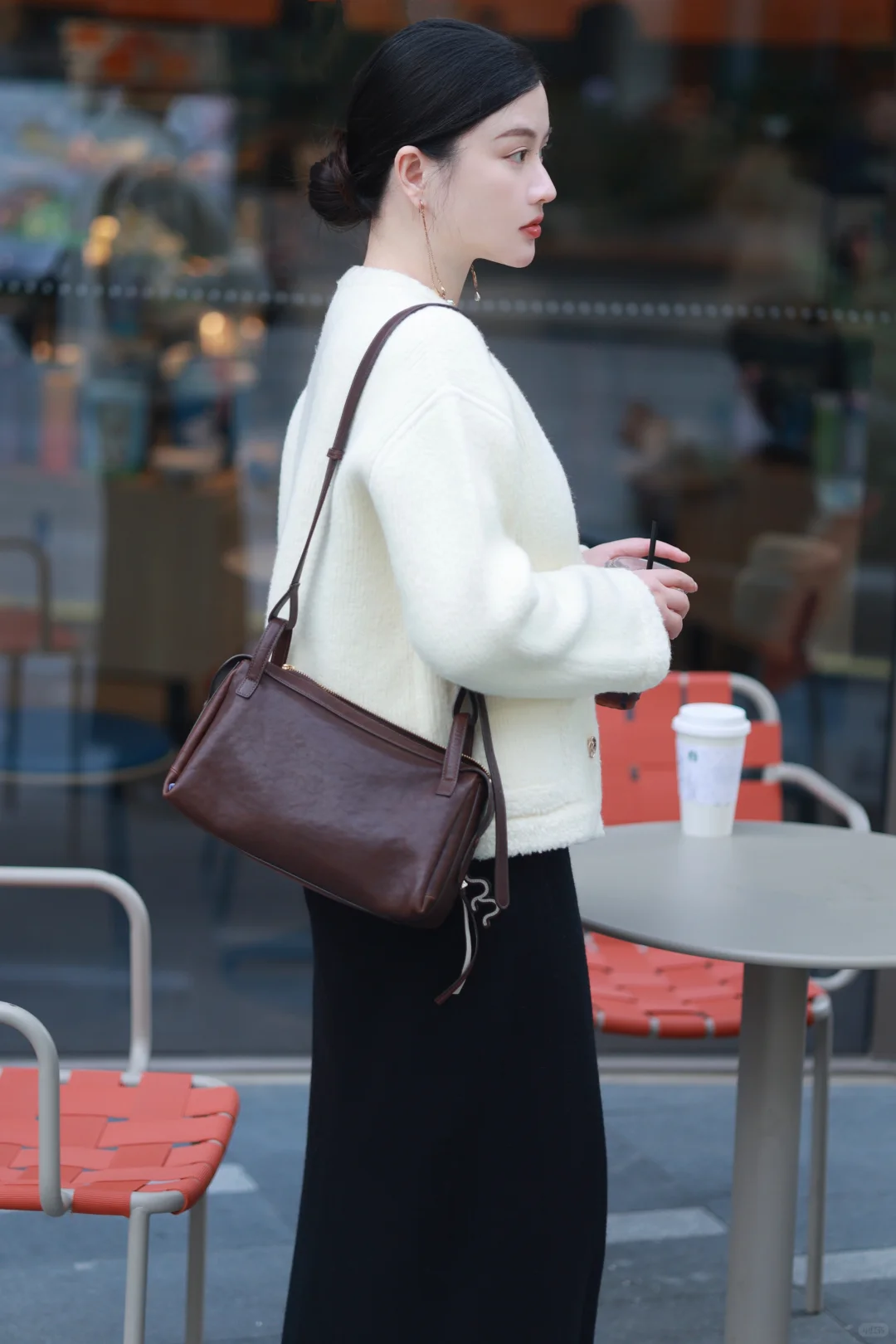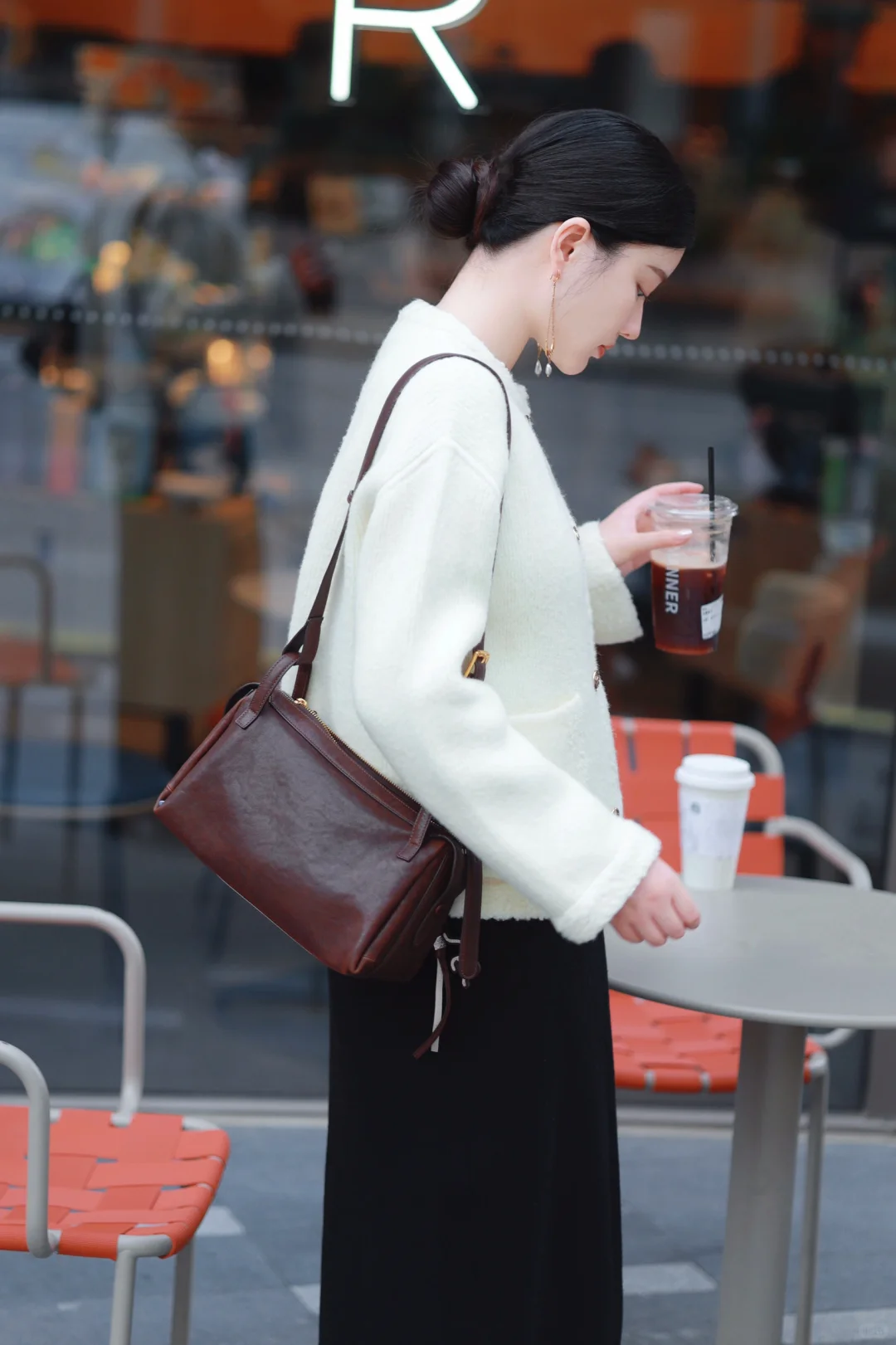 🍁我过秋天的仪式感是,暖绒绒的白毛衣外套,有东方禅意的红枫色手工包包,与怎么也戒不掉的冰葡美式。