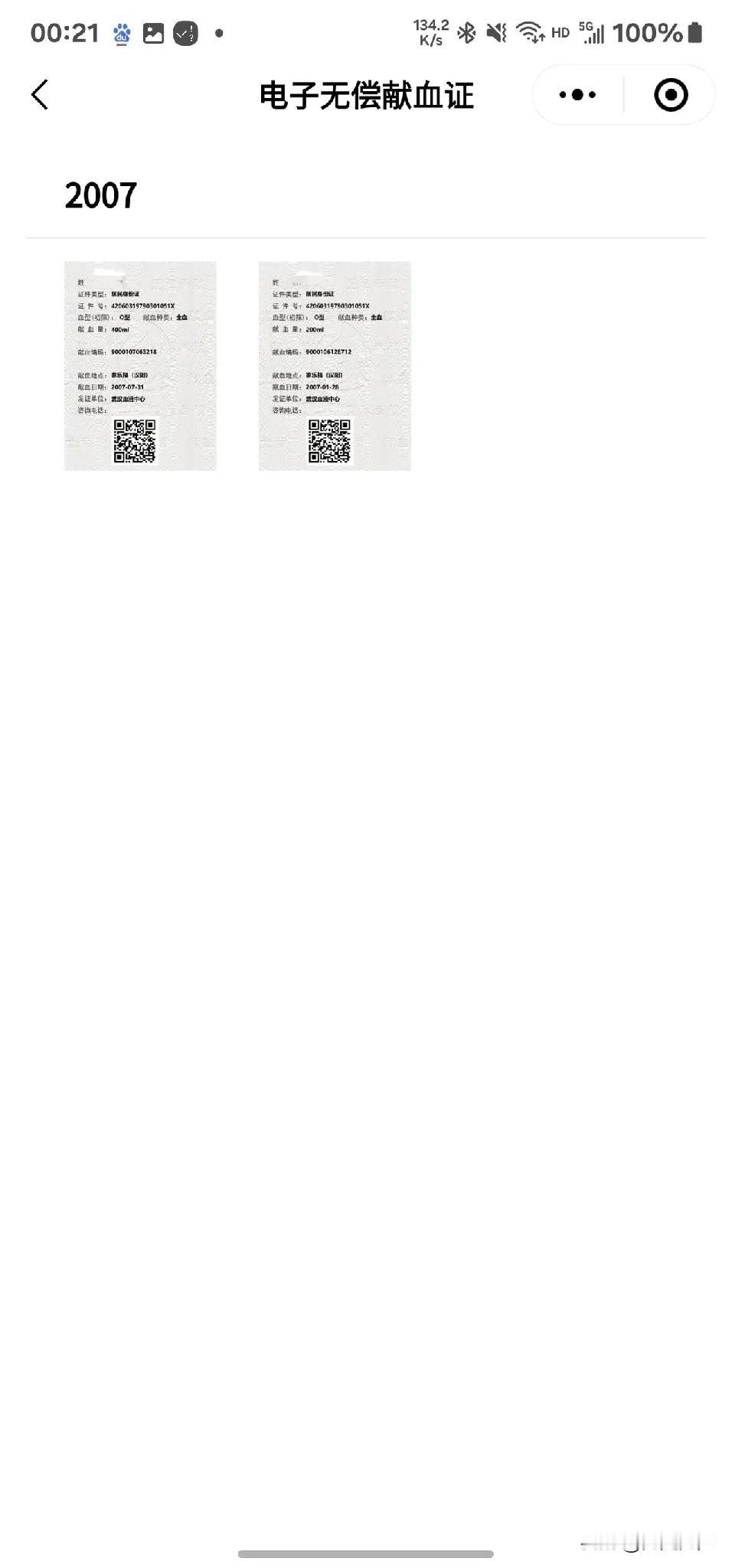 关于无偿献血,突然记得很多年前有献血过血,自己都不记得那年了,发现微信小程序有这个查询,感觉应该没有记录。查询一看07年献血2次,合计600毫升。有记录就好……看来没埋没我的贡献。