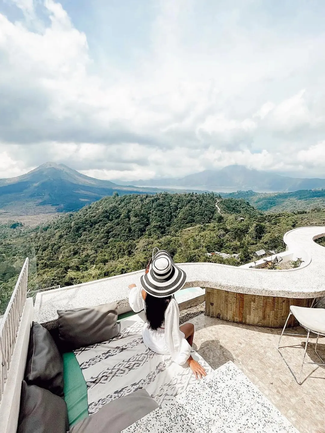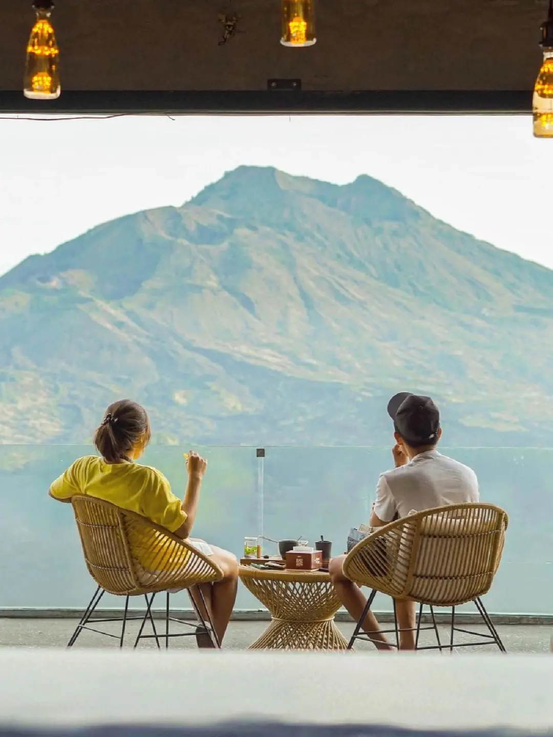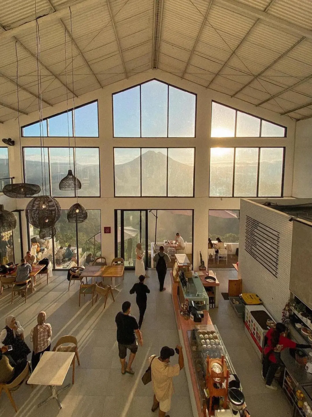 🌋这家咖啡馆最近在ins上🔥的不得了,3层楼高的建筑随着阶梯环绕在山壁上,正面面对巴杜尔火山,右边则是阿贡火山。