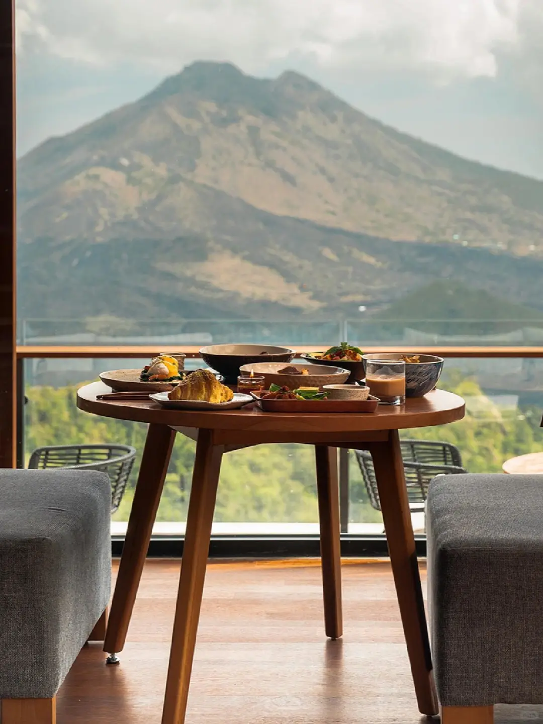 🌋咖啡馆正对巴杜尔火山,是一幢极具设计感的透明玻璃屋子,内部装饰的高雅、奢华、明亮,每一个角落都漂亮极了