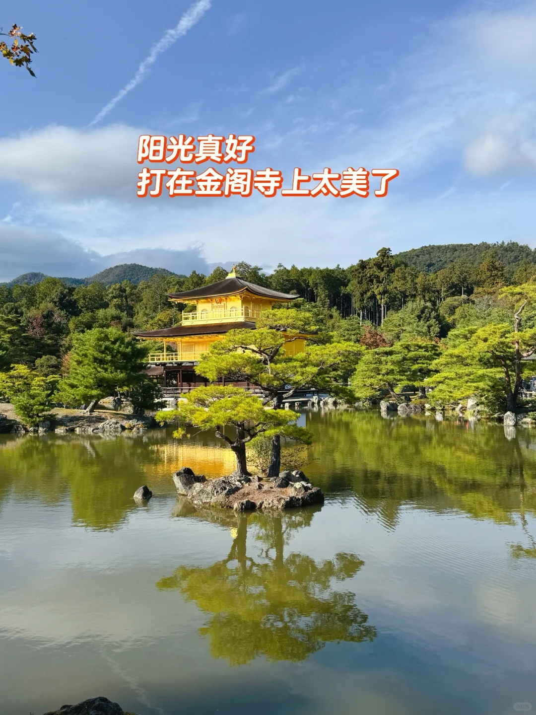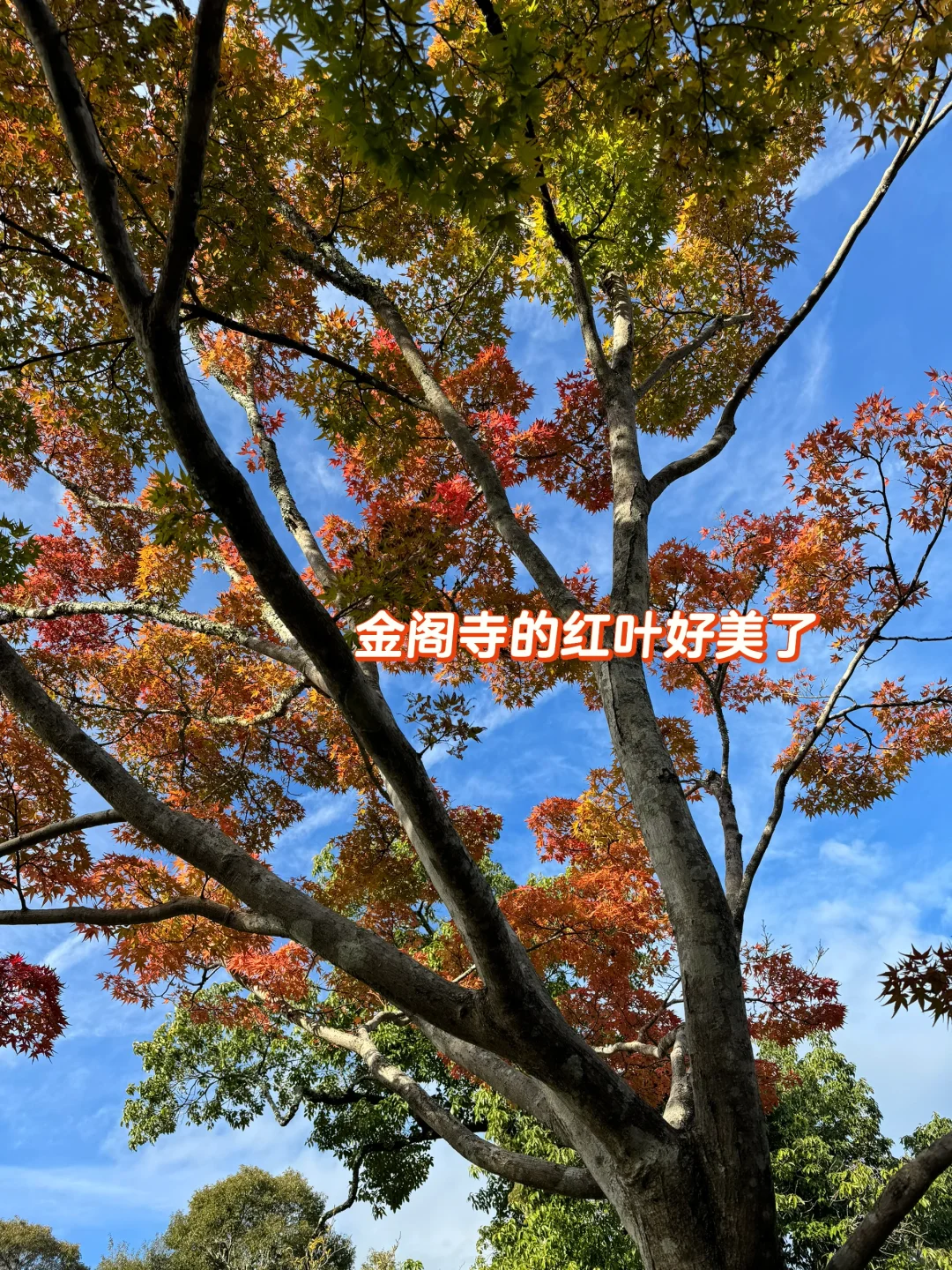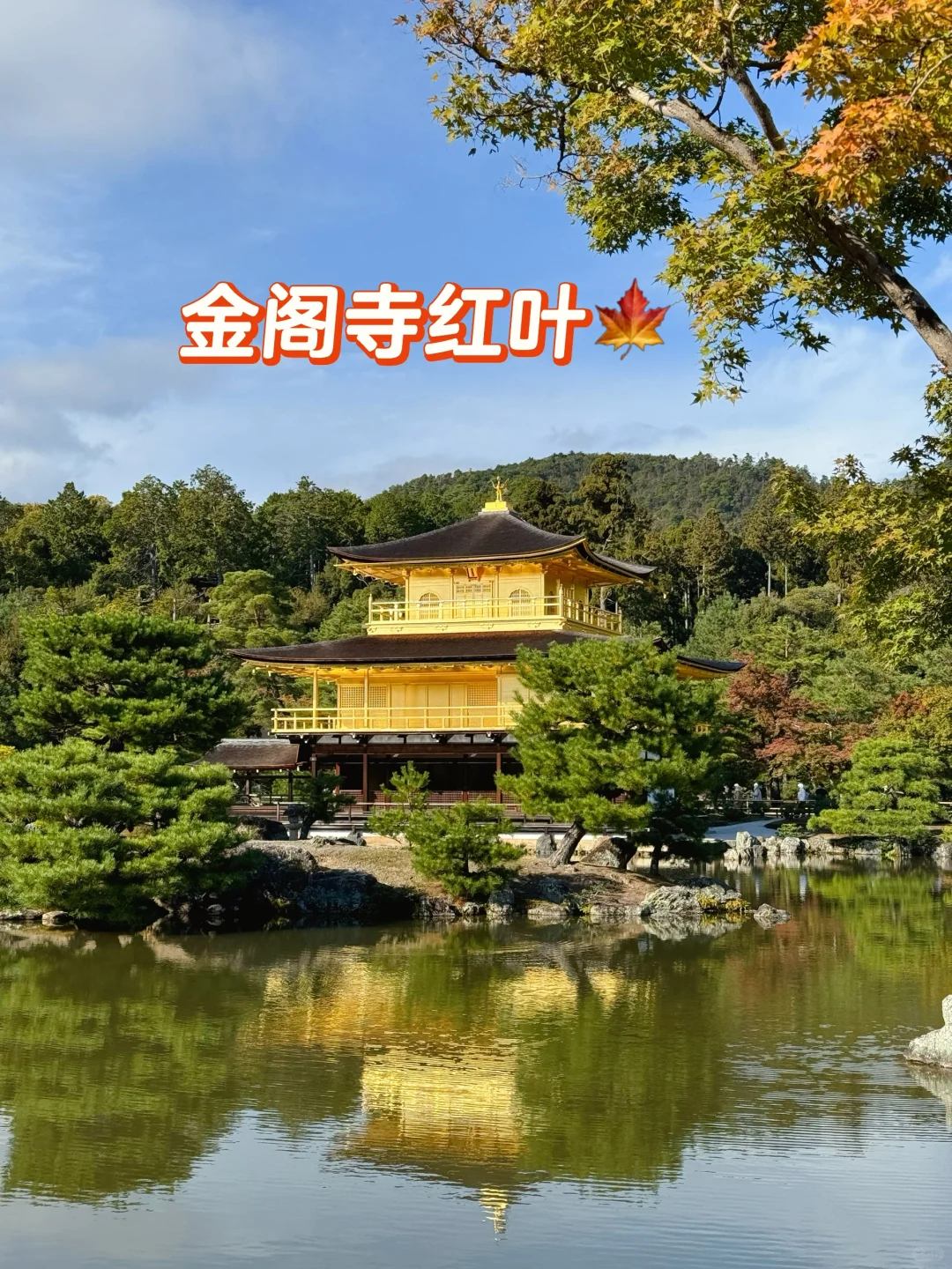 今天去了下鸭神社、慧光寺、北野天满宫,最后一站是金阁寺。金阁寺真的太美了!金碧辉煌的,连门口卖的雪糕都撒上了金箔!阳光打在金阁寺上,金光灿灿的,和湖中的倒影相得益彰,被京都的美学惊呆了!而且这些神社里面,金阁寺的红叶zui红!