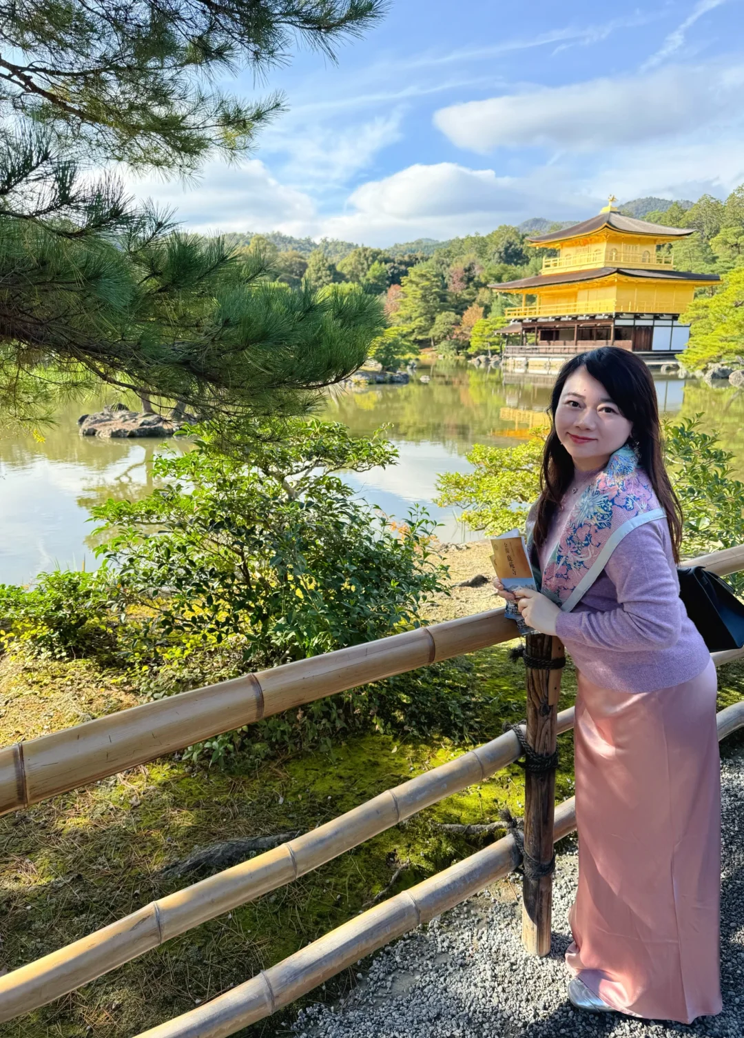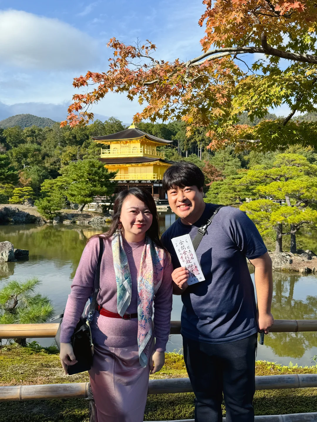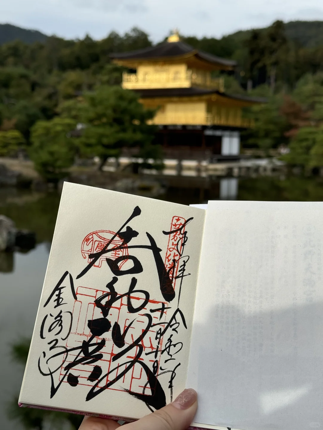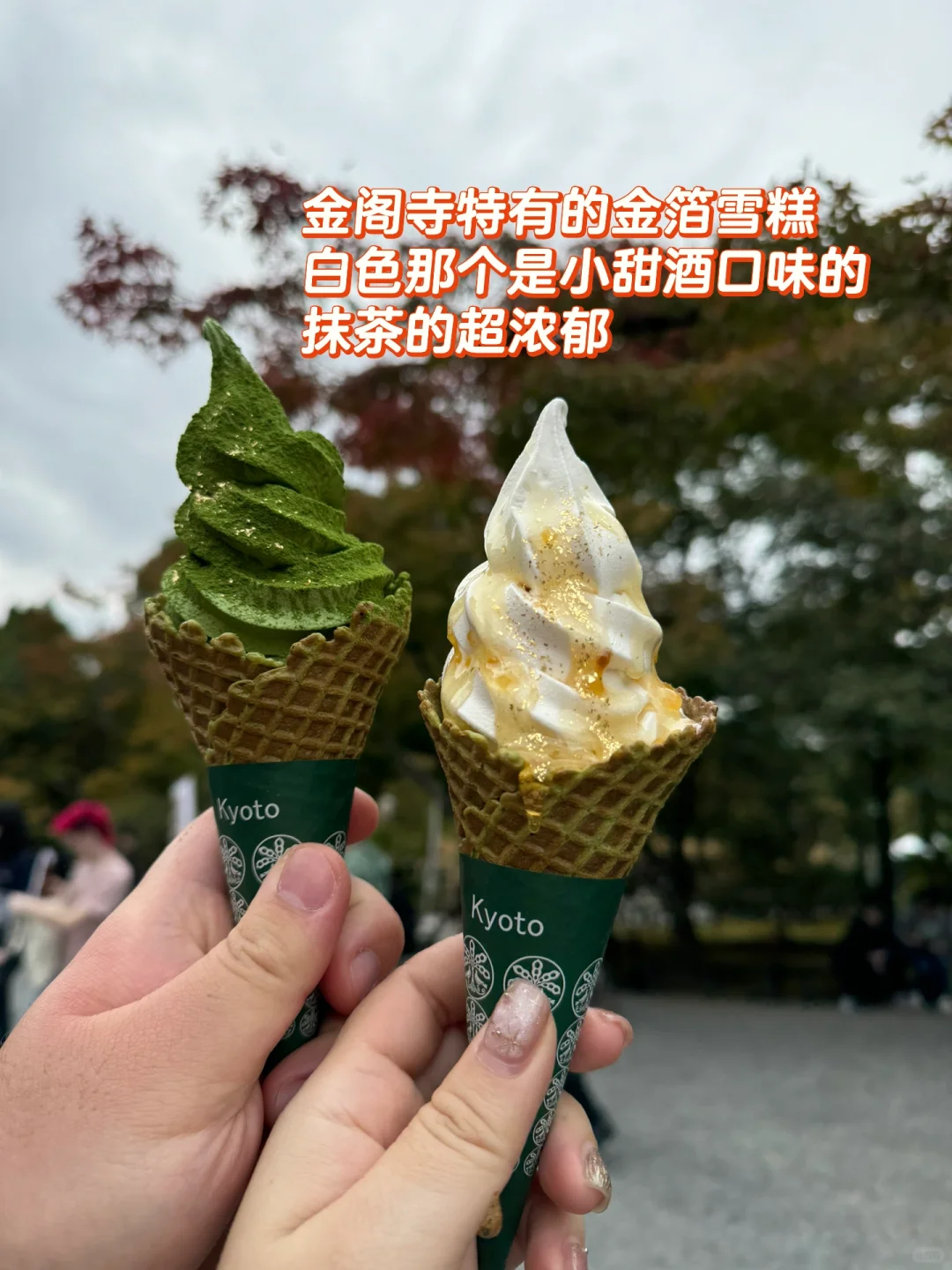 今天去了下鸭神社、慧光寺、北野天满宫,最后一站是金阁寺。金阁寺真的太美了!金碧辉煌的,连门口卖的雪糕都撒上了金箔!阳光打在金阁寺上,金光灿灿的,和湖中的倒影相得益彰,被京都的美学惊呆了!而且这些神社里面,金阁寺的红叶zui红!