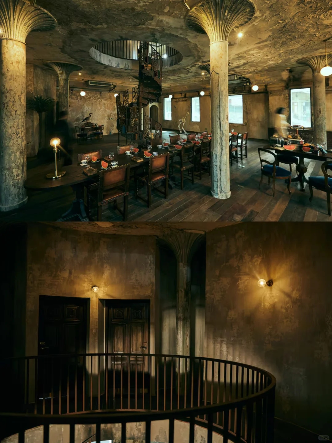 ▪️一楼的设计是很华丽怪诞的风格,还有一个很大的动物标本,楼梯也是很有复古历史感的旋转楼梯,拍照特别漂亮~