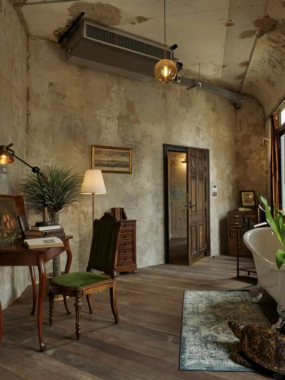 ▪️家居设施也是很精致的古董风格,很有19世纪老曼谷的格调,在房间里随手一拍都会很出片~空调、冰箱、急救包、浴缸等都配备的很齐全