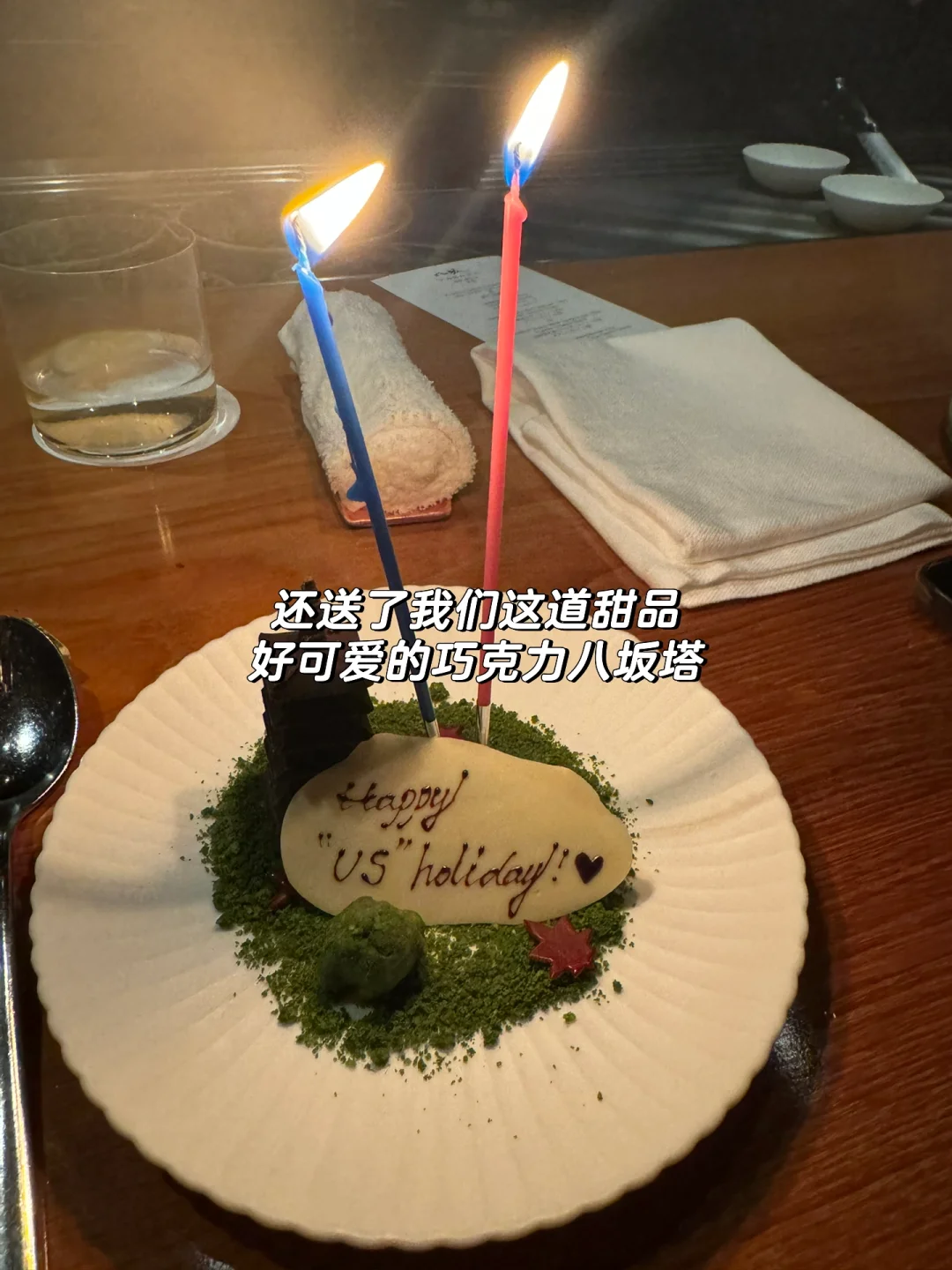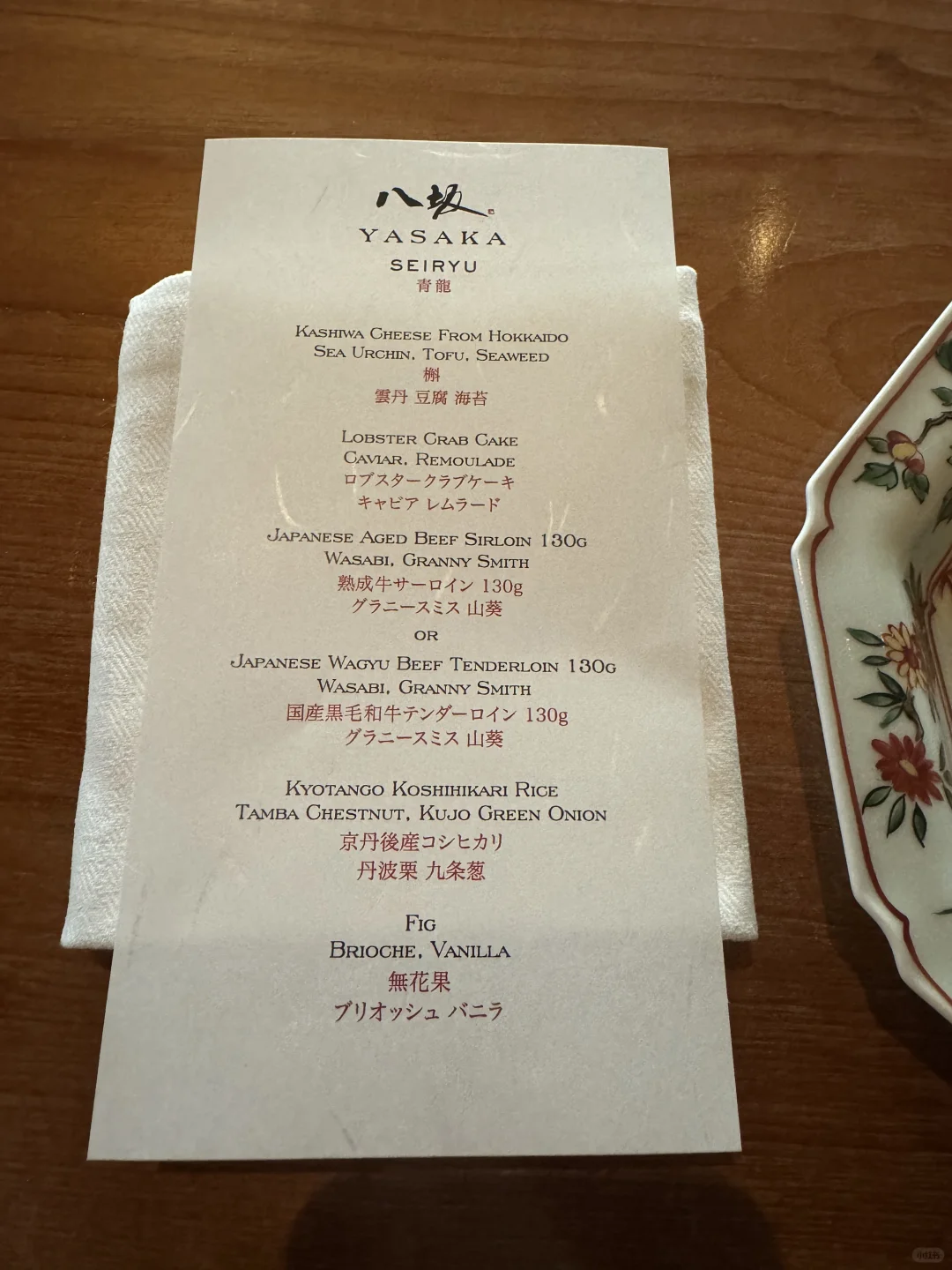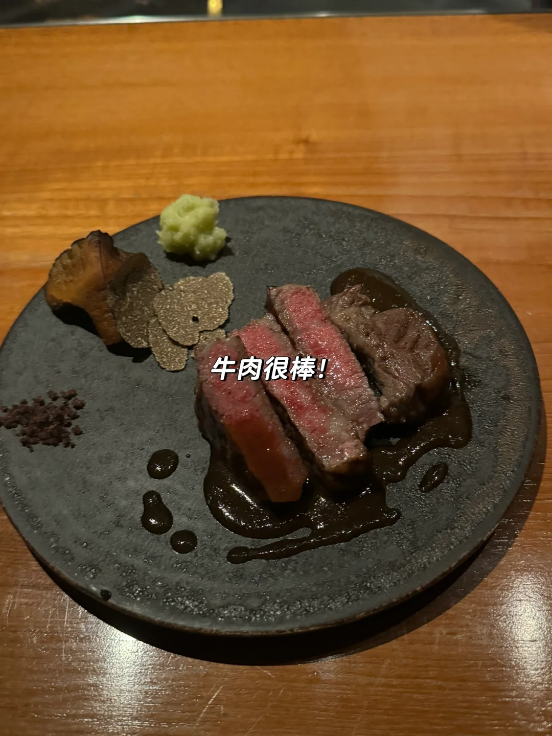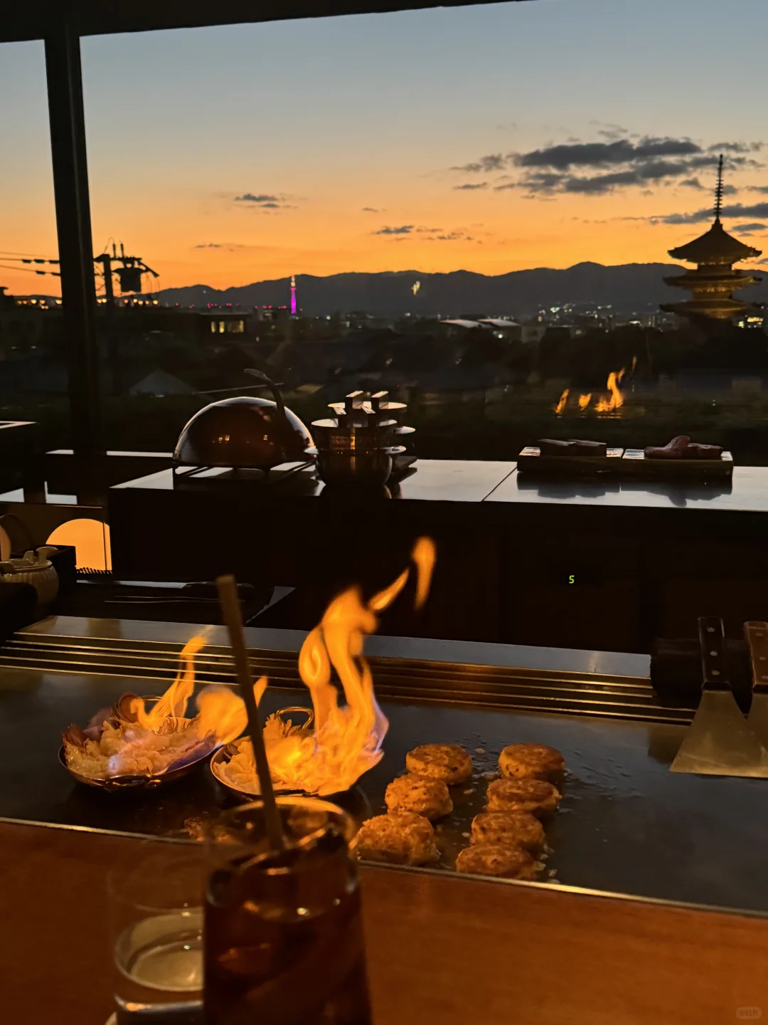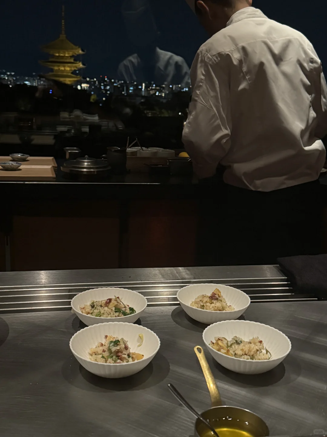 在京都吃的漂亮饭,最推荐是这家在柏悦酒店的铁板烧Yasaka。一边看着日落时的八坂塔,一边吃板前料理,太有幸福感了!提前一个月在官网预订,给了我们最中间的位子!果真是全球最美的柏悦,无论是景观、还是服务都很赞,东西也好吃,牛肉很嫩,新鲜山葵蓉带着苹果和柠檬的香气,甜品也不错。服务员很会提供情绪价值,走的时候是主厨和服务员一起在门口送我们,还给了两盒丹麦酥做礼物,真的是吃得非常开心的一顿漂亮饭!!