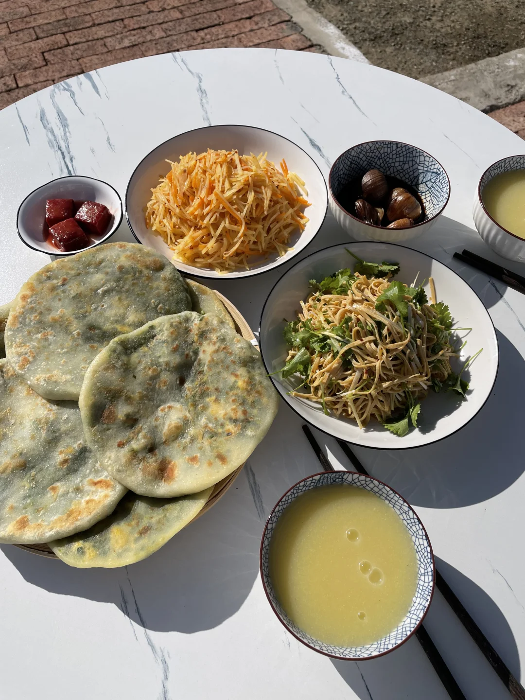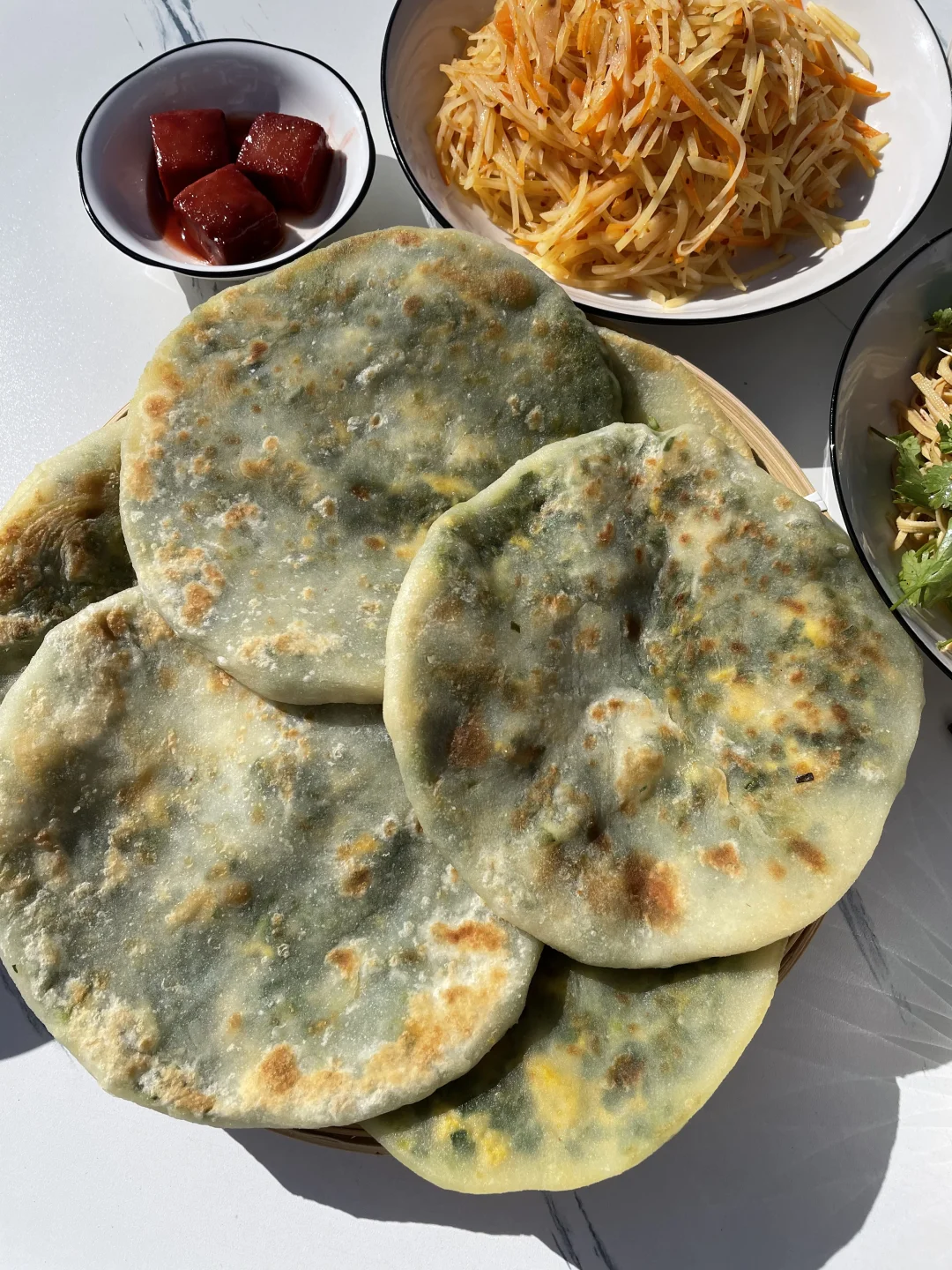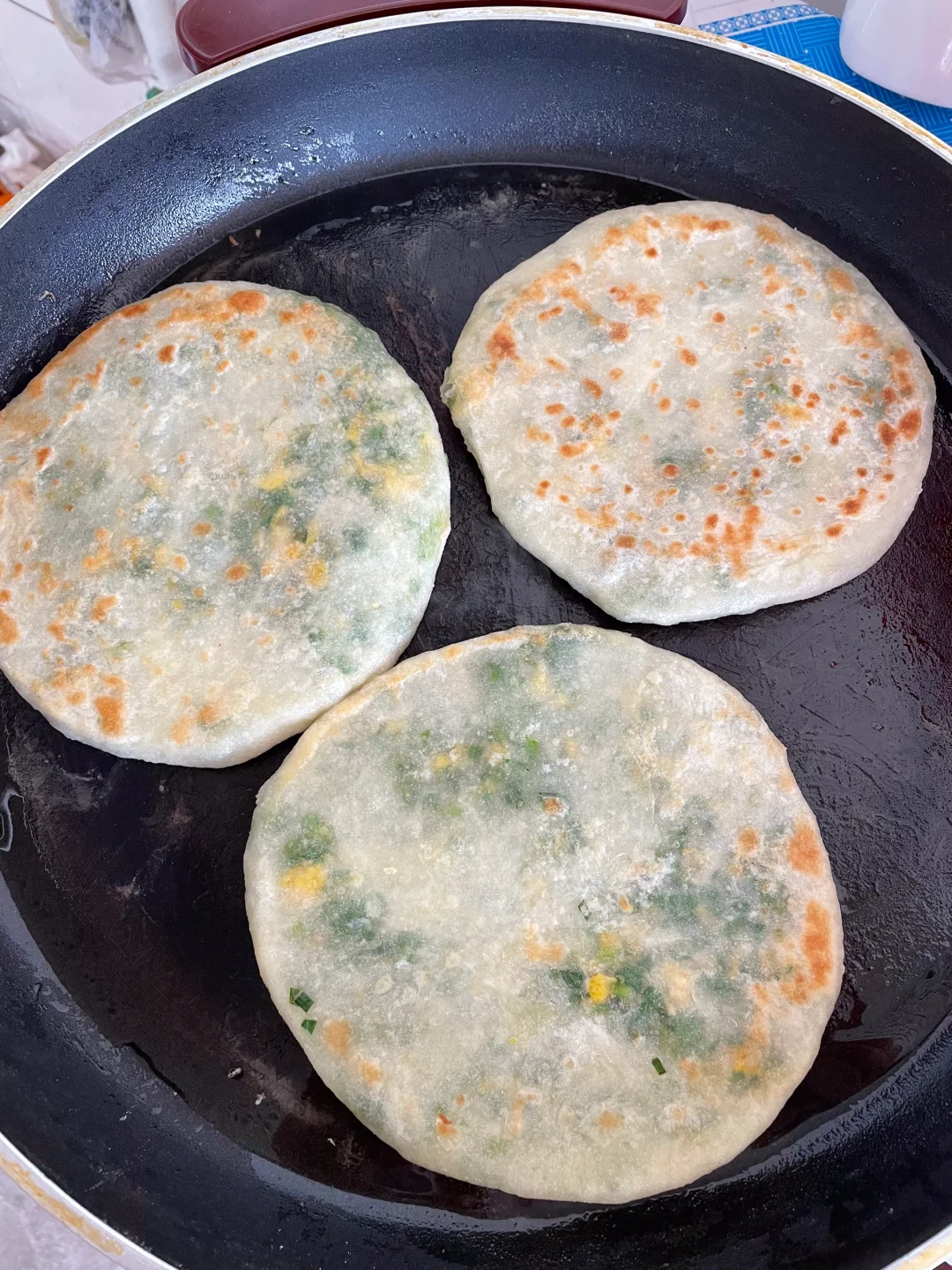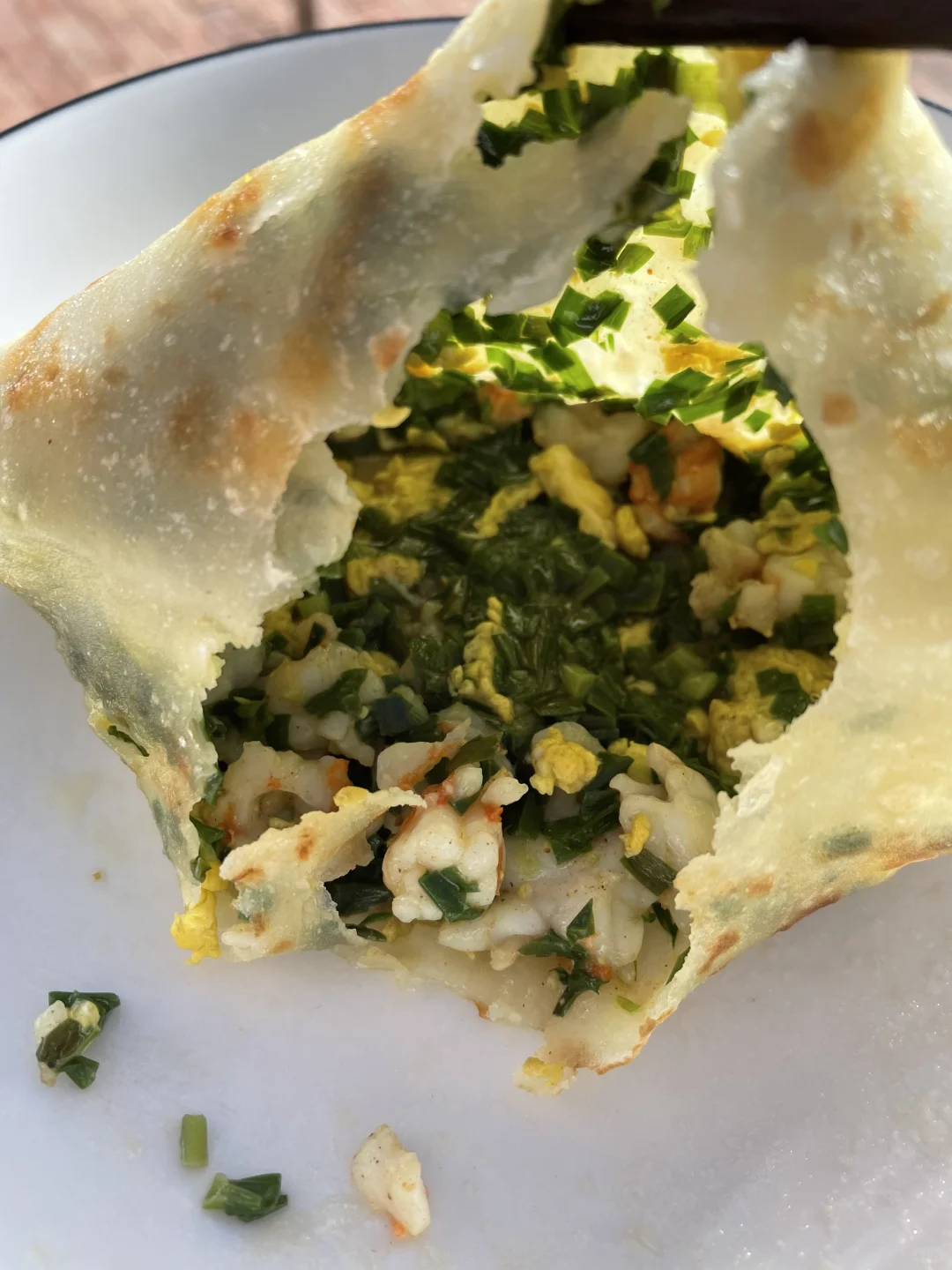 早晨起来狂炫两张妈妈烙的韭菜馅饼