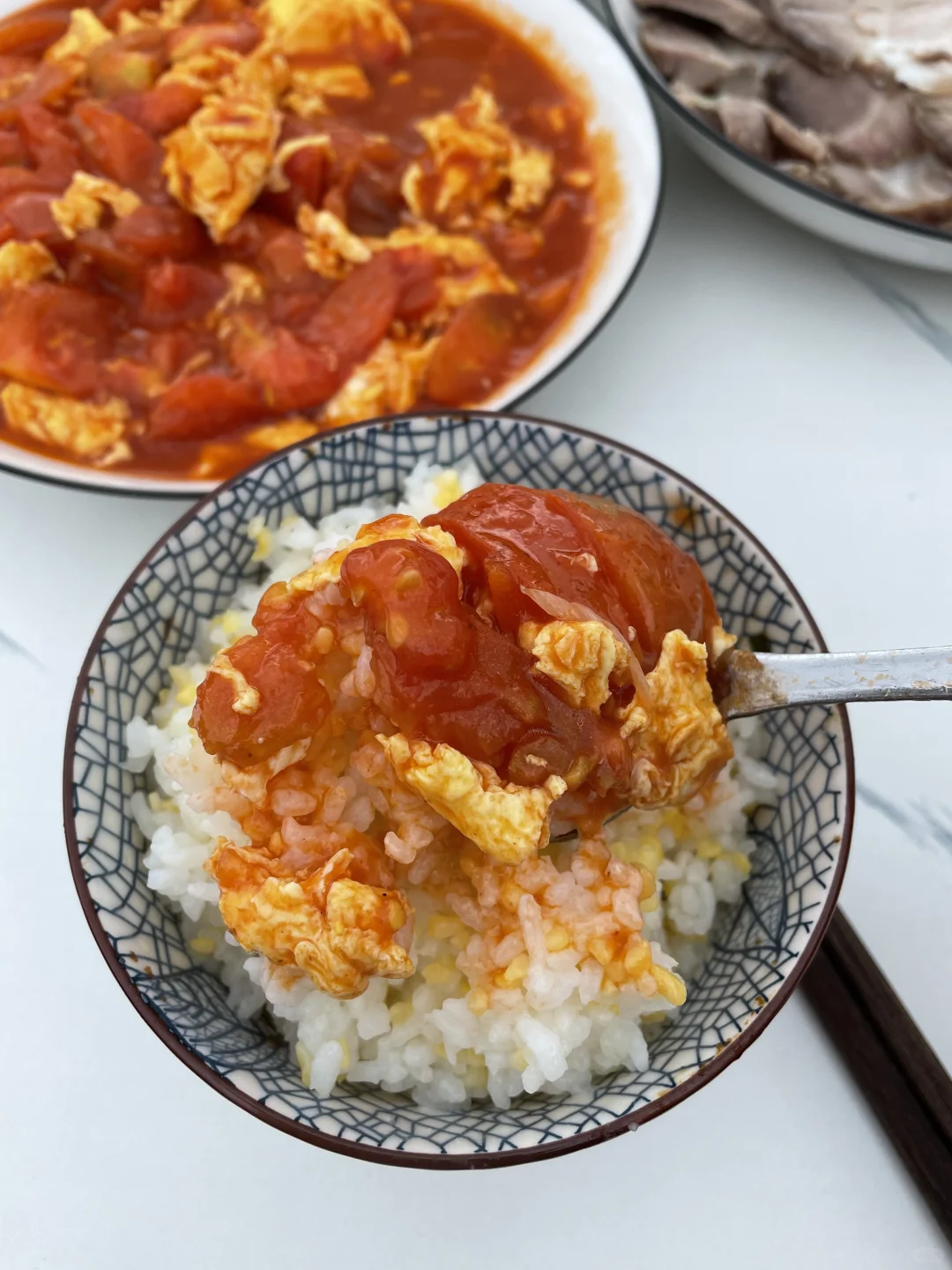 今天我只爱西红柿炒鸡蛋拌饭 姐妹们吃晚饭了吗 记得回家吃饭呦