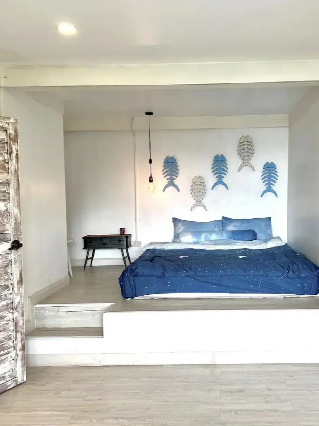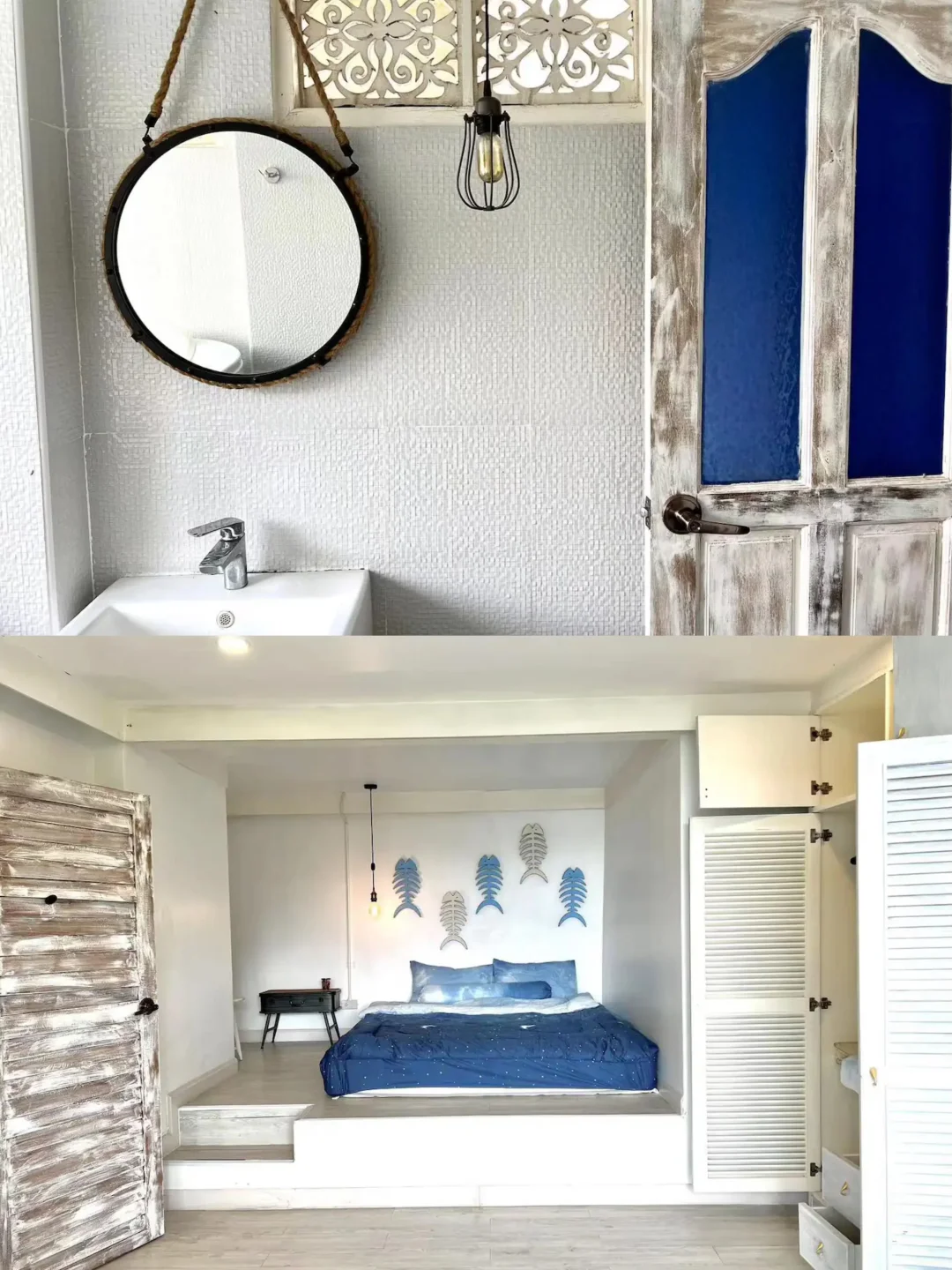 🛋民宿里有2 间卧室,2个卫生间,空间很大很舒适,和我印象中的传统泰式建筑不同,这里以蓝白色调为主,增加了很多海洋元素,有点点希腊的味道