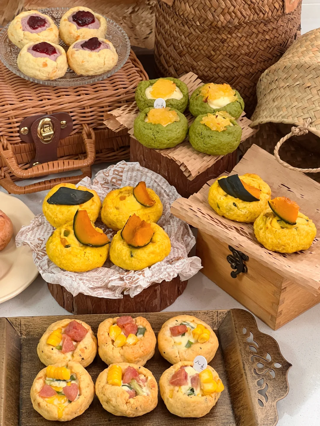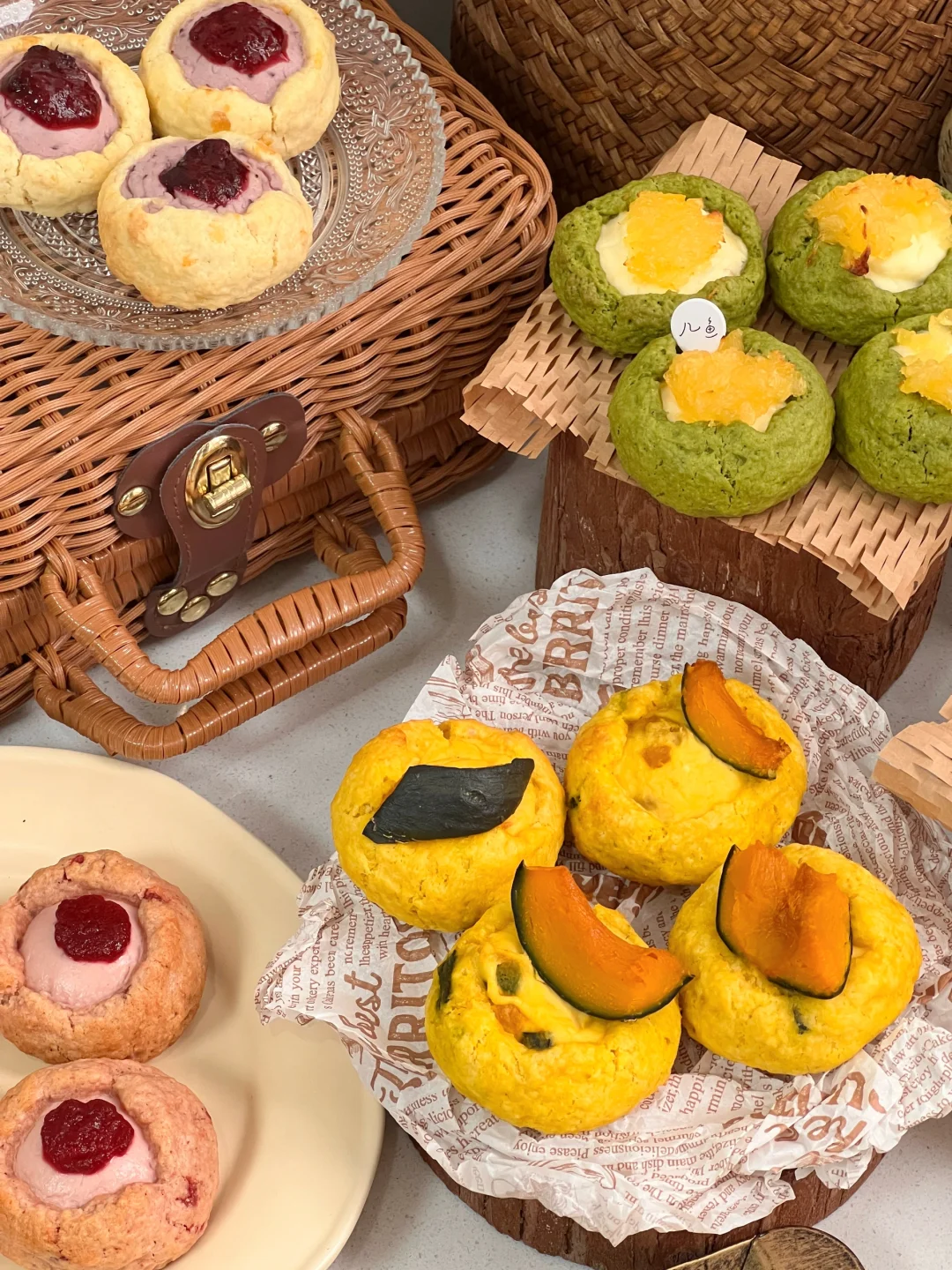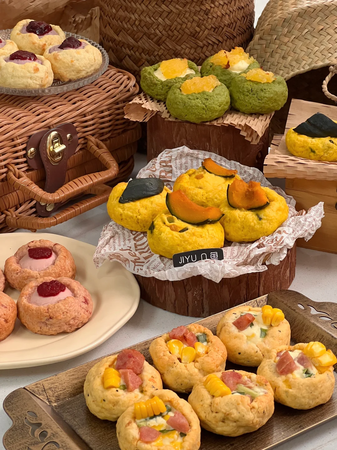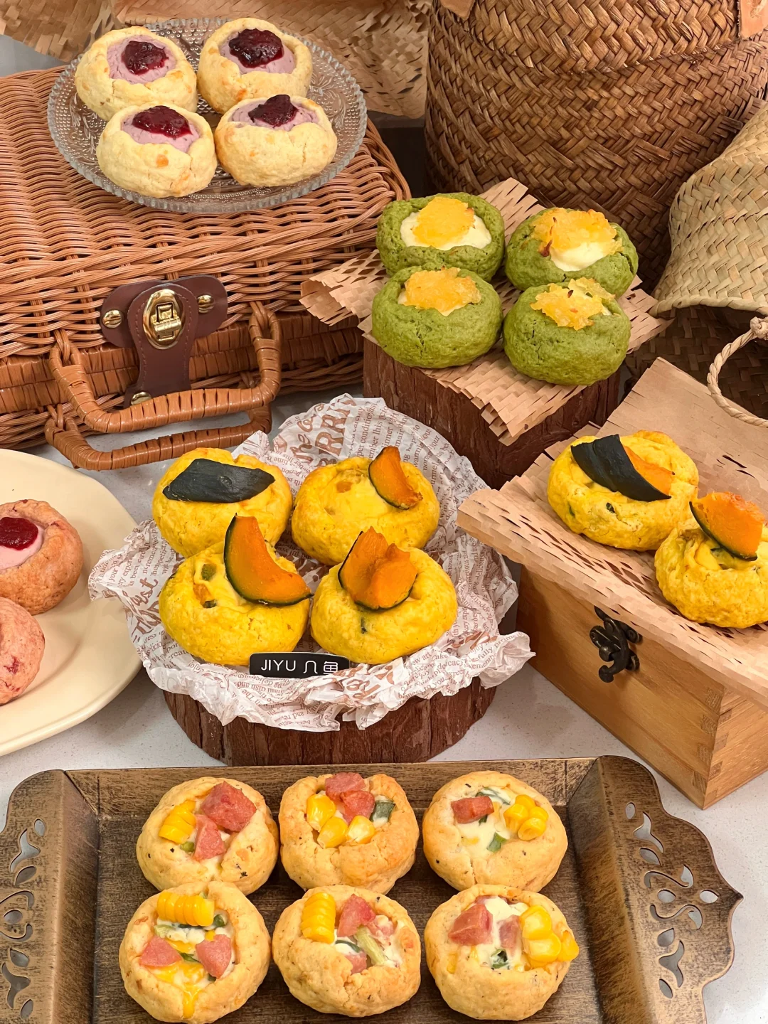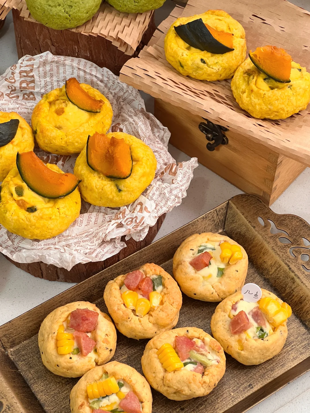 成都几鱼烘焙|多风味乳酪司康下午茶甜点专项 五种多风味的乳酪司康 椰香斑斓凤梨乳酪司康 草莓树莓乳酪司康 应季莓果乳酪司康 咸香烤肠肉松乳酪司康 浓郁贝贝南瓜乳酪司康