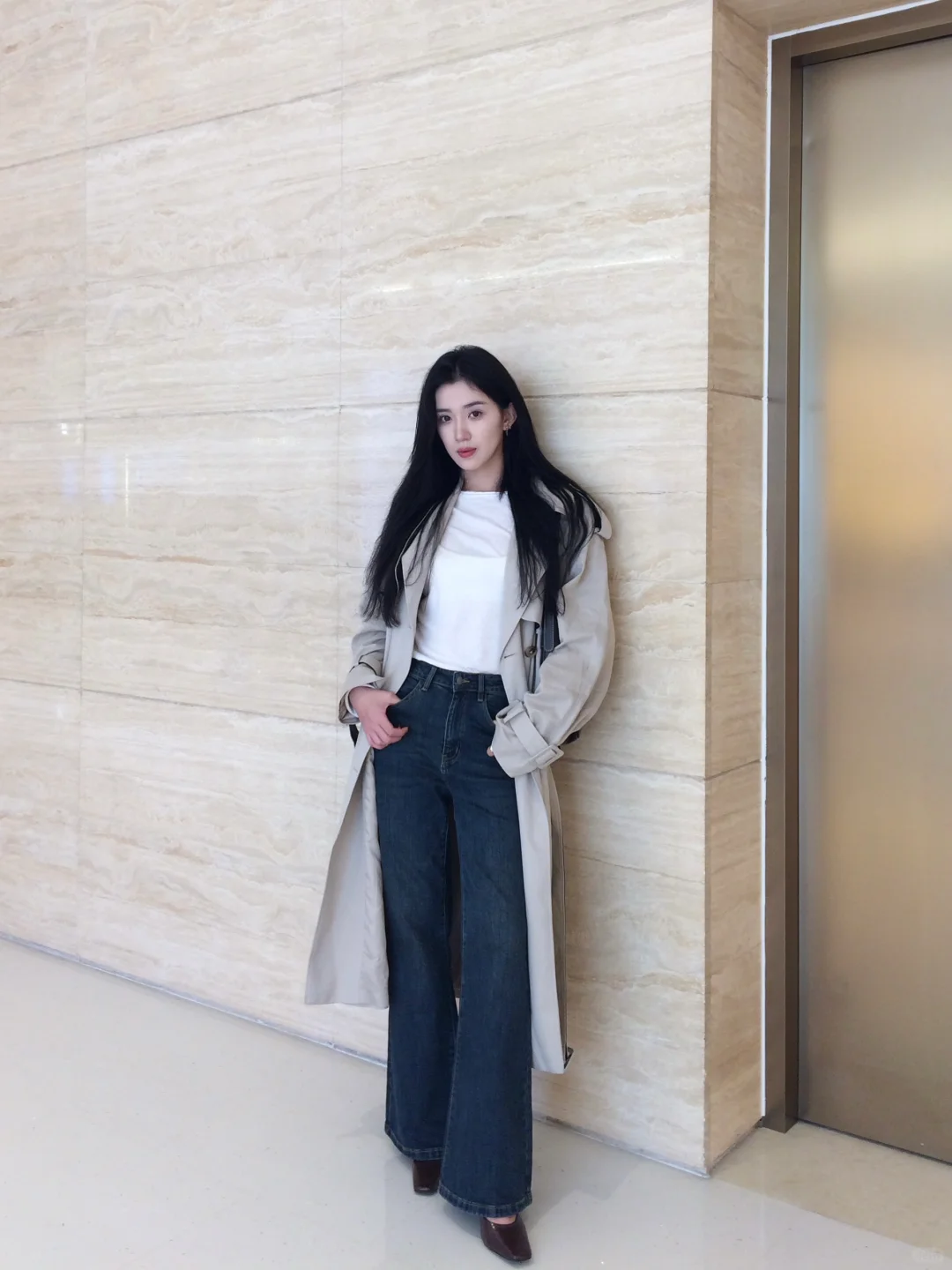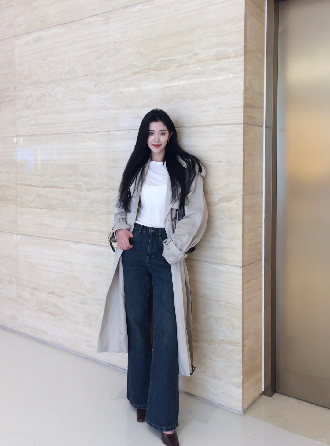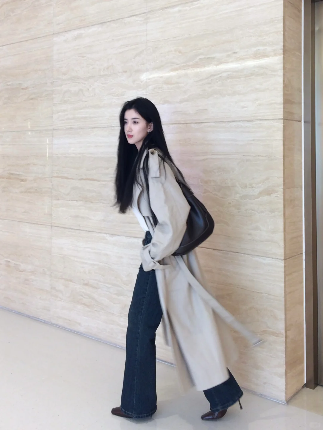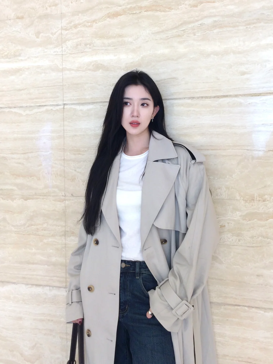 今年我更偏向姐系搭配 所以UR这款风衣深得我心 搭配了深蓝色直筒牛仔裤 方头高跟鞋 虽然复古但一点都不过时