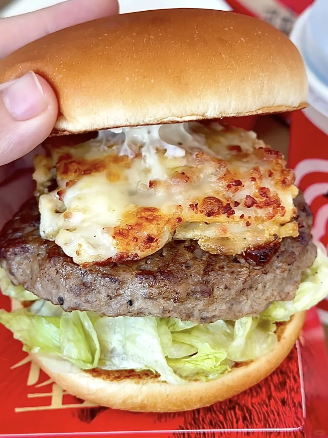 真的超级爱这个!用的是百分百龙江和牛!厚制牛肉饼整整有120g,多汁又厚实!