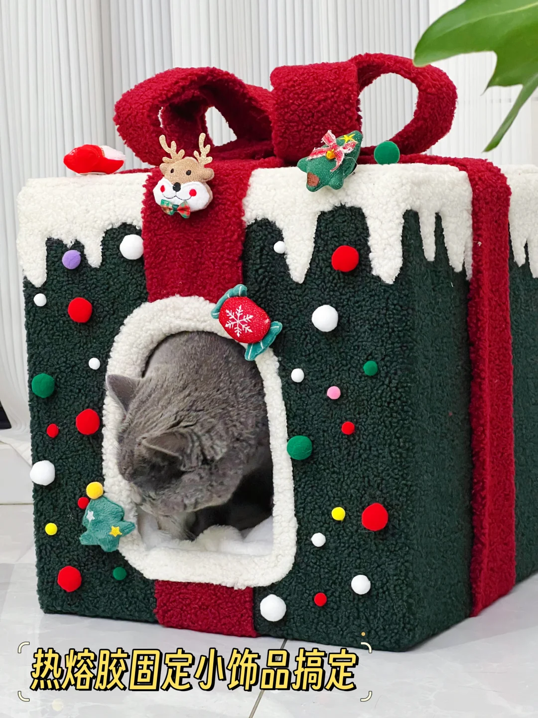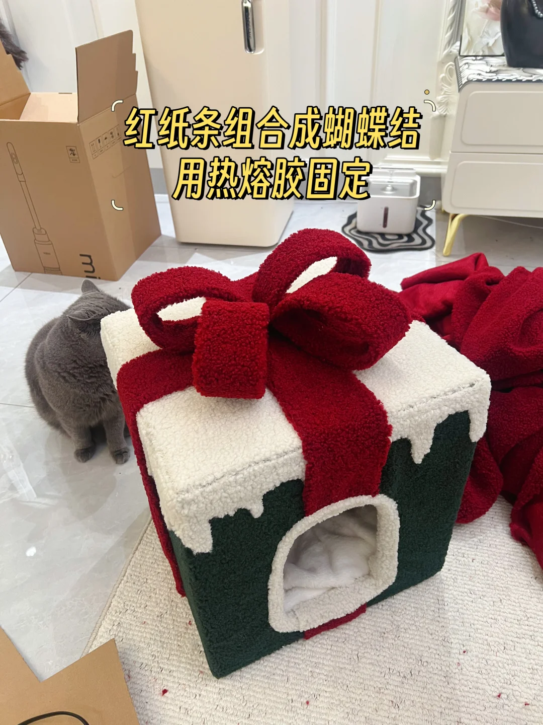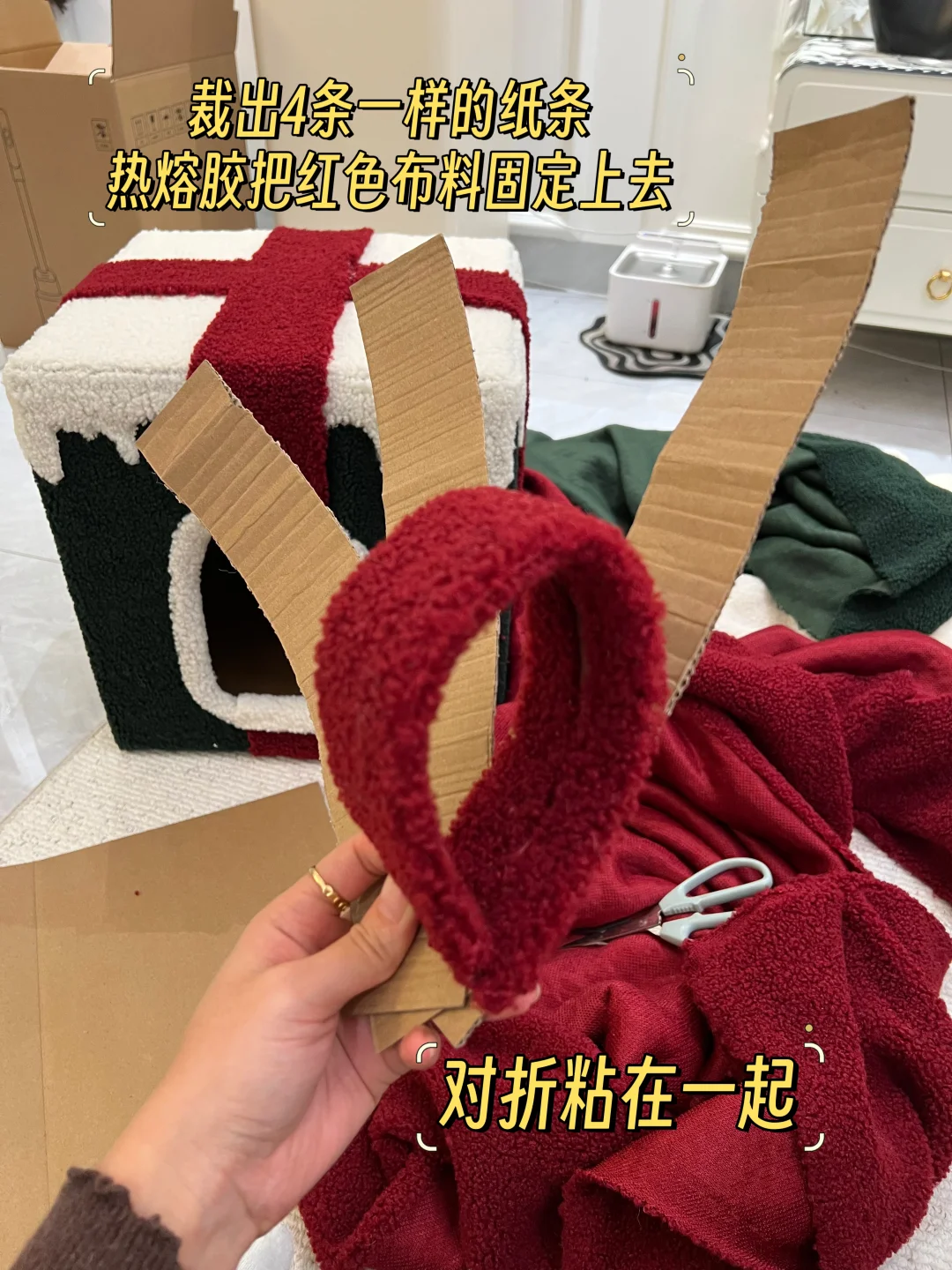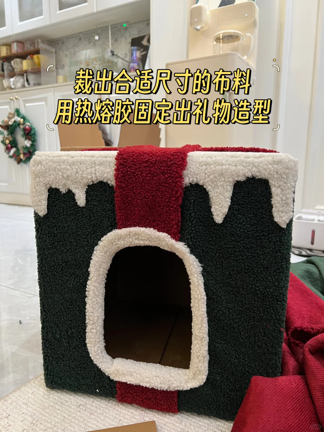还有一个月圣诞了,忍不住给家里布置起来 买了几块泰迪绒布料,用家里不要的废纸壳给我家猫做了一个超有氛围感的圣诞礼物🎄🎁猫窝 🌲用到的材料: 纸壳(正方形箱子最好) 红白绿泰迪绒布料 美工刀、尺子、记号笔 热熔胶、彩球装饰 操作起来非常简单,两个小时就能搞定! 既是猫窝也是圣诞装饰~快做起来吧!