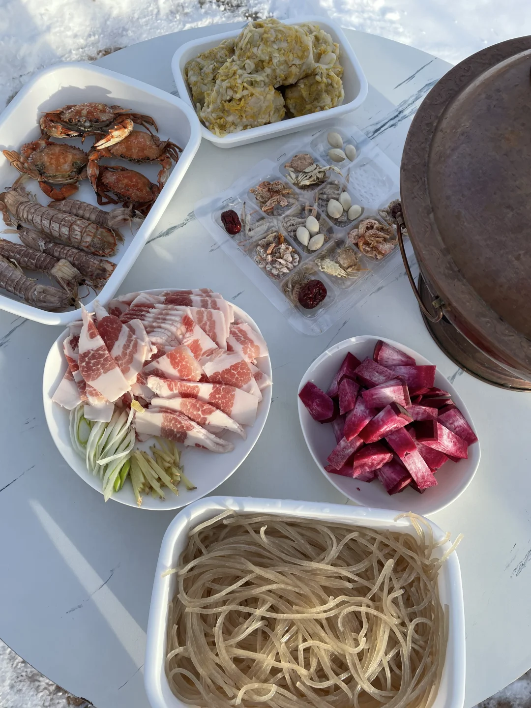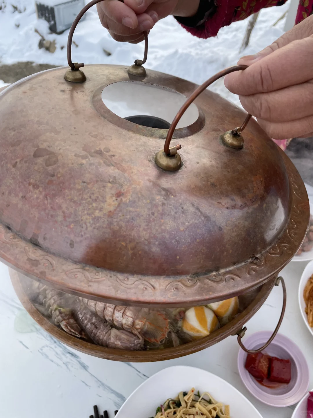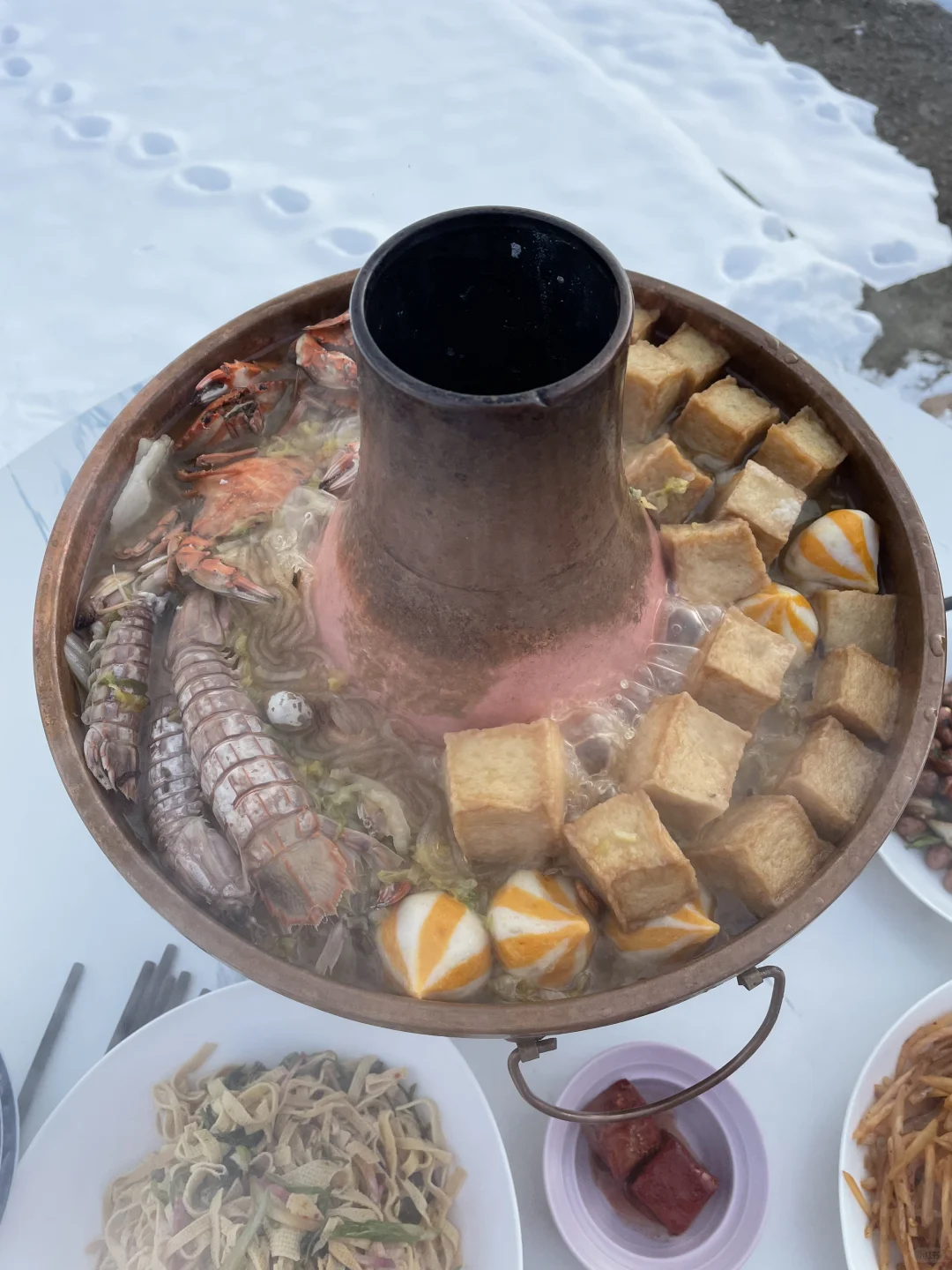 我好幸福呀!我有妈妈给我做的初雪的火锅!
