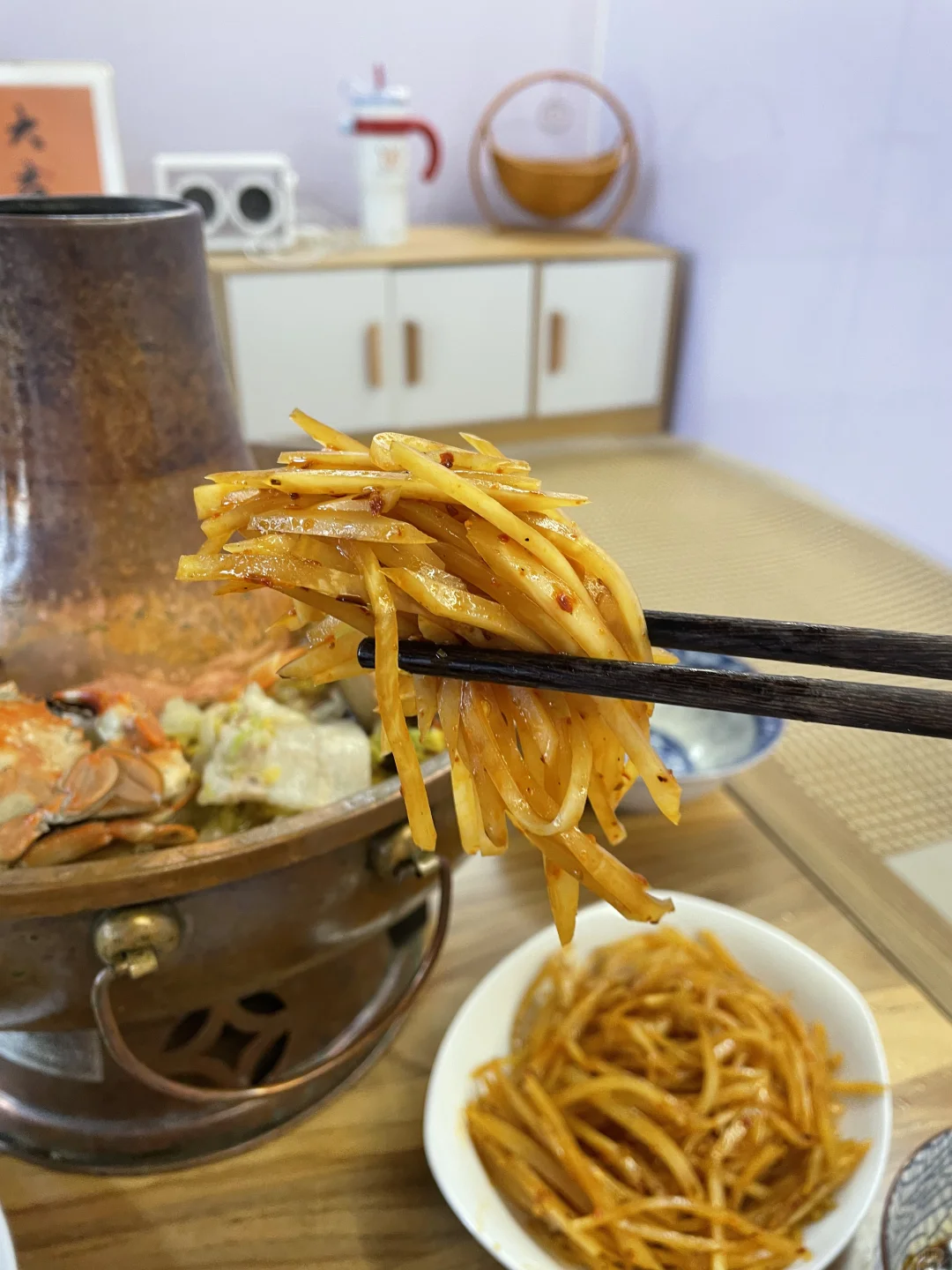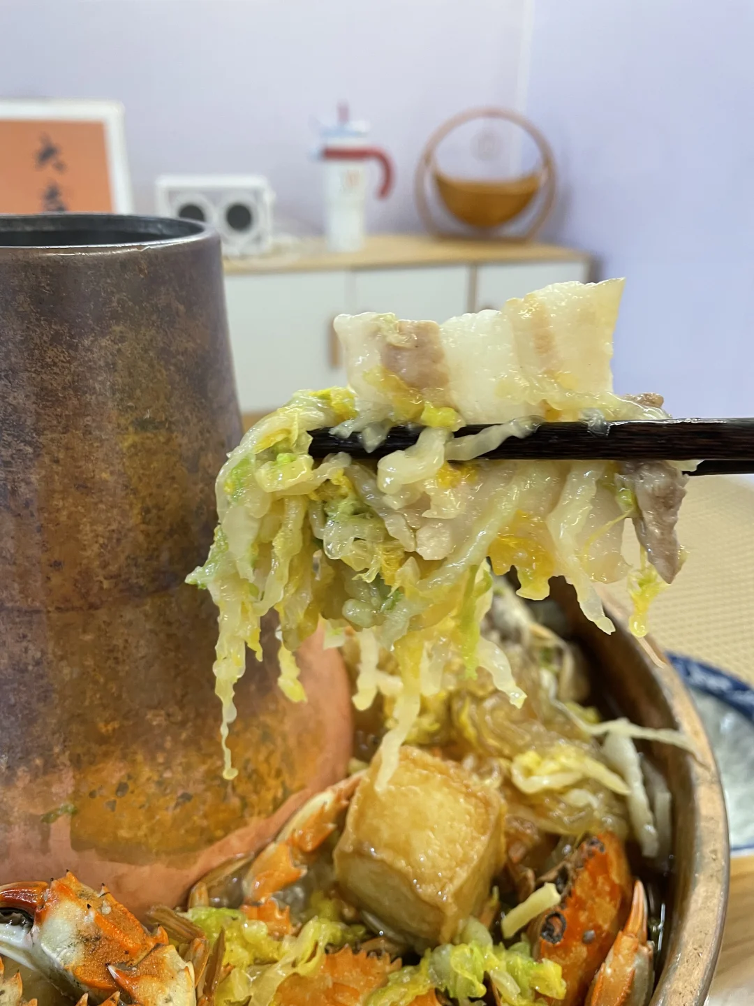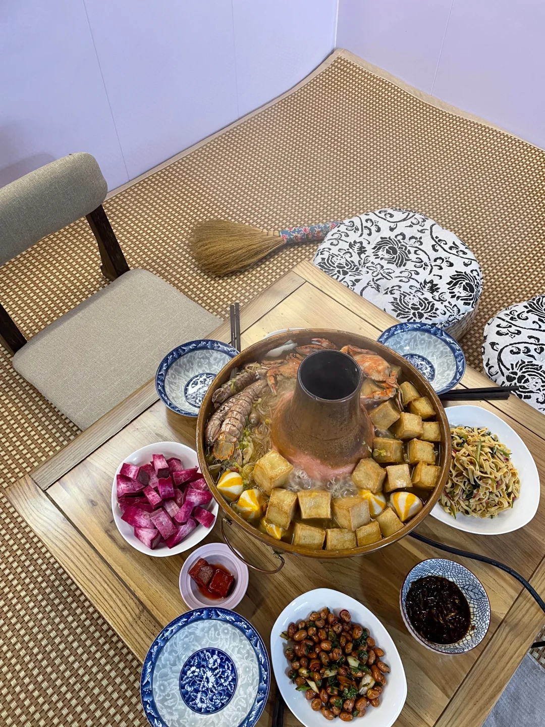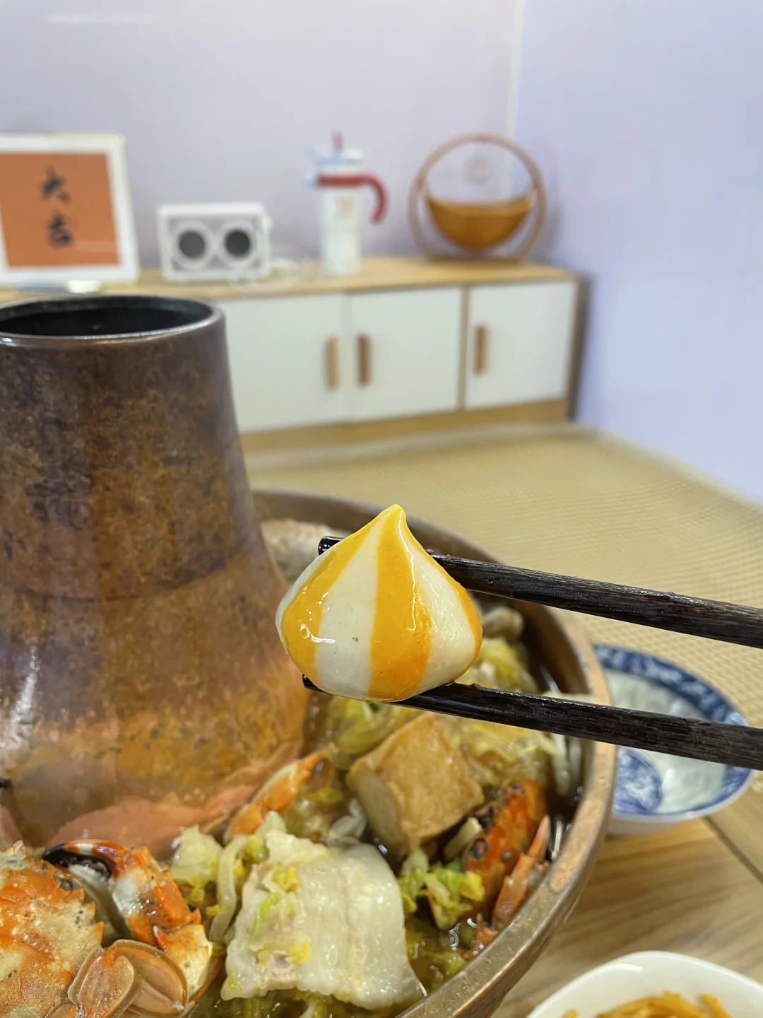 我好幸福呀!我有妈妈给我做的初雪的火锅!