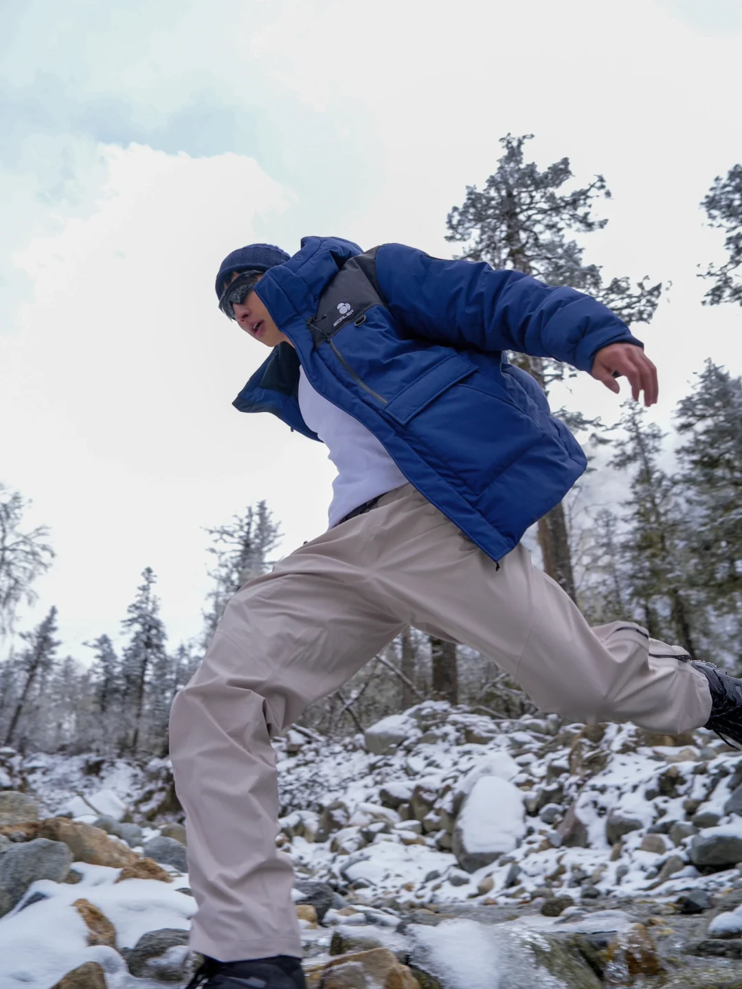 让我在徒步时毫无负担地轻松应对极寒天气里布暖燚绒+蓄热技术里布,升温快加上内外防风设计 对身体双重保护