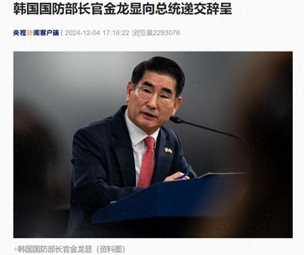 韩国国防部长提交辞呈!称紧急戒严所有责任在我,尹锡悦已批准,并提名新人选!