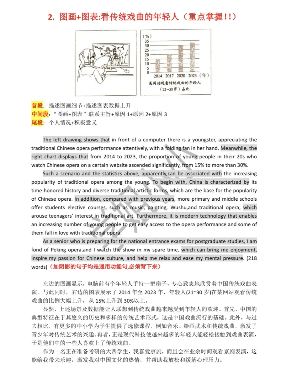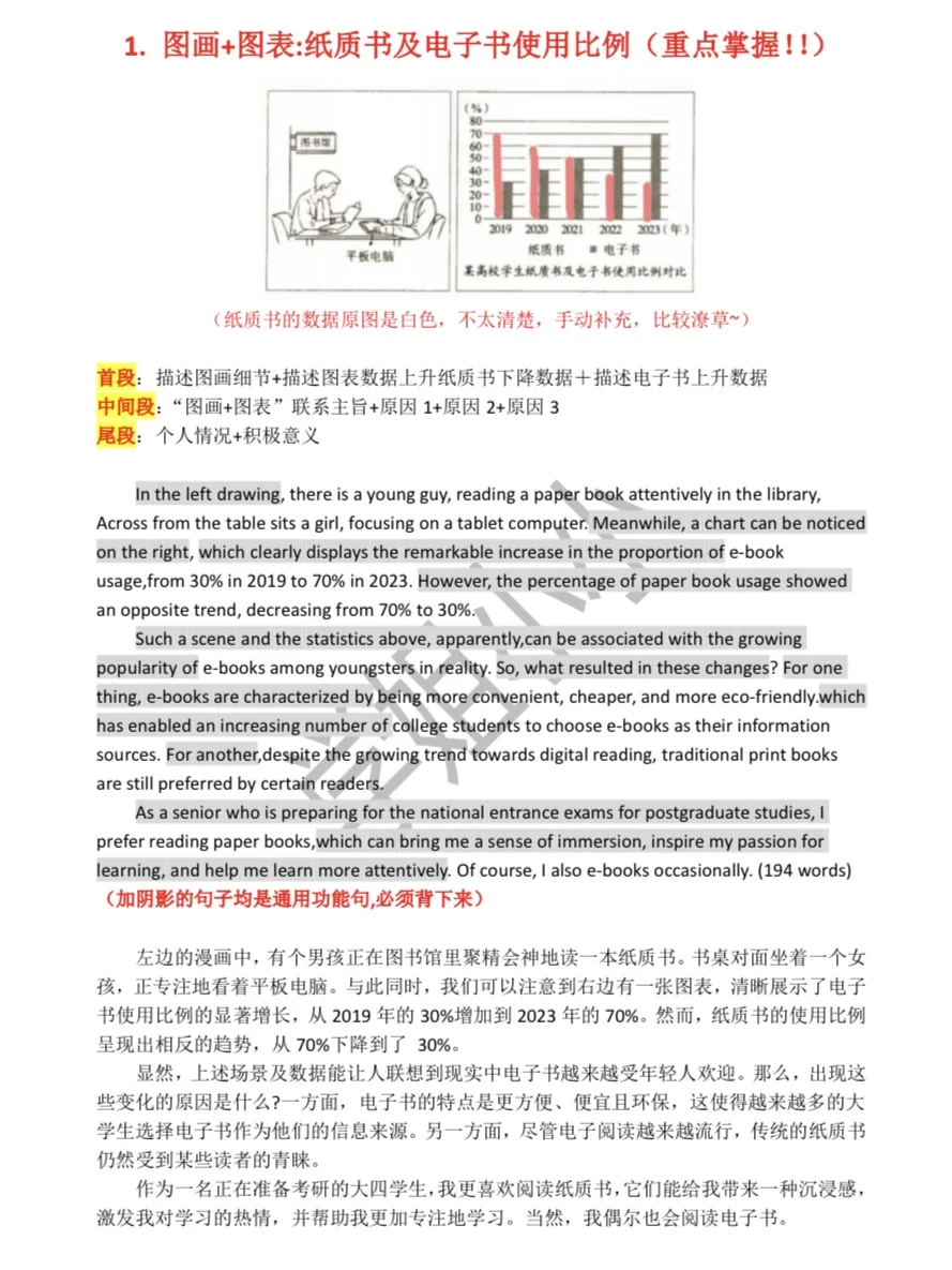 🎉🎉解释一下标题,这三篇作文是英语二考纲上要求过的,但是历年还从来没有考过的题材——图画➕图表、图画作文。准确来说还有第四篇的新材料作文也是考纲要求内容。