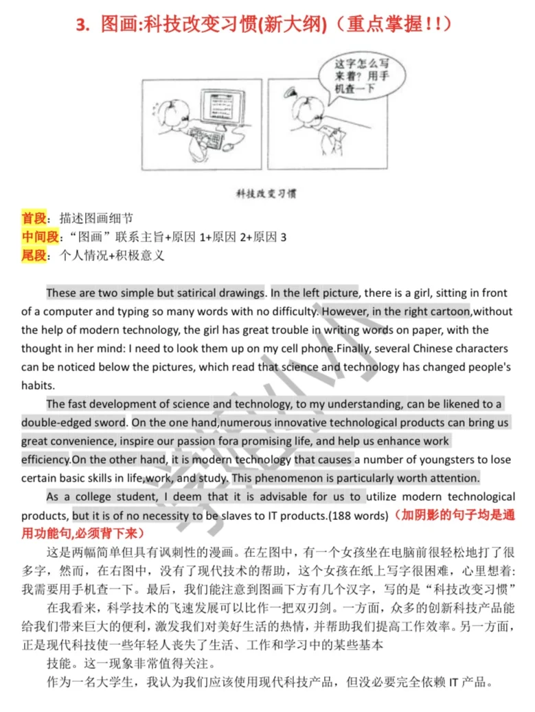 ❗❗去年英语一卡考了图画加图表相结合的形式所以今年英语二也极有可能会考这种形式,也有可能只单独考图画作文。所以让大家重点掌握,是因为之前咱们学x的重点都在图表作文上,大家应该掌握的差不多了。所以接下来这十几天的时间就是查缺补漏,把考纲上要求的内容也掌握一下,万一考到了也不慌张!