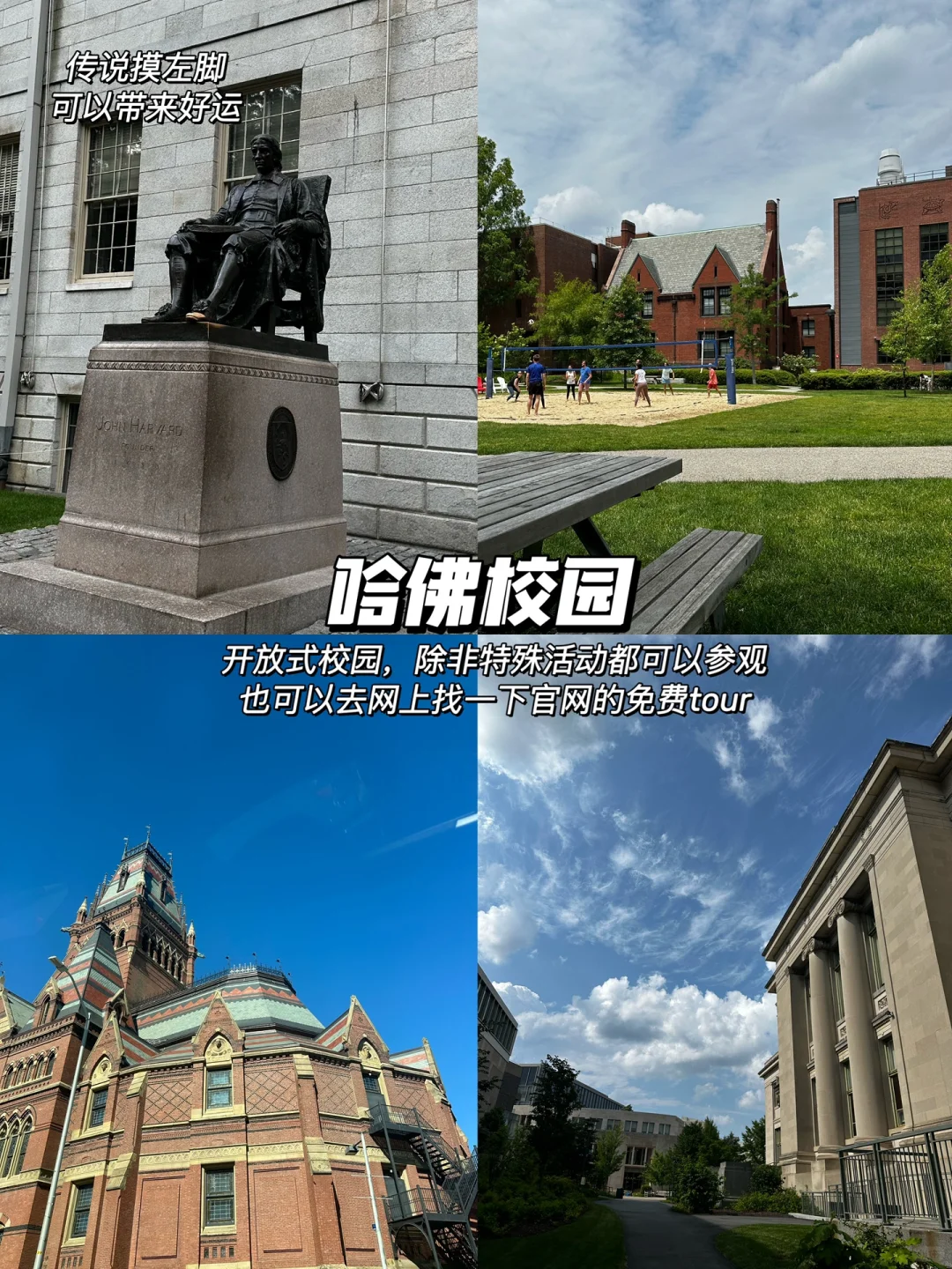 来Boston旅行的uu们,速速收藏! 都是带朋友们走过好几次的 一条路线打卡两家名校,加入了一些独特的twist 正着反着都可以走,希望对大家有所帮助🥹 — 📕哈佛 【Harvard Square】—【John Harvard 雕像】— 【Memorial Church】—【Widener图书馆】—【艺术博物馆】—【咖啡/冻酸奶】—【Havard COOP 1&2书店】 ☑️可选: 【法学院】—【哈佛自然历史博物馆】—【Annenberg Hall】 · 哈佛和MIT之间有两种路线: 1️⃣ 1号公交或免费shuttle到MIT正门口 2️⃣ 地铁红线直达MIT COOP · 📗 MIT 【MIT Chapel】—【Alchemist 雕像】—【Great Dome】—【Stata Building】—【Kendall Square】—【MIT COOP 书店】 ☑️可选: 【MIT Banana Lounge】—【奶茶】—【斯隆管理学院】—【MIT博物馆】 — 中间想去哈佛SEC或商学院uu们可以 1️⃣ 从哈佛乘66/86号公交 2️⃣ 走到商学院的另一边,再乘70号公交到Central Square 3️⃣ 步行10分钟到MIT正门 — ✨小tips: 1️⃣ Harvard Square 和 Kendall Square 有很多餐厅/咖啡厅,适合中途休息 2️⃣ 哈佛的法学院和商学院有独立书店,喜欢纪念品的朋友不要错过! 3️⃣ MIT离市区更近:1号公交直达Newbury购物区 & 红线地铁通往DT — 碎碎念:下篇出附近咖啡店合集! —