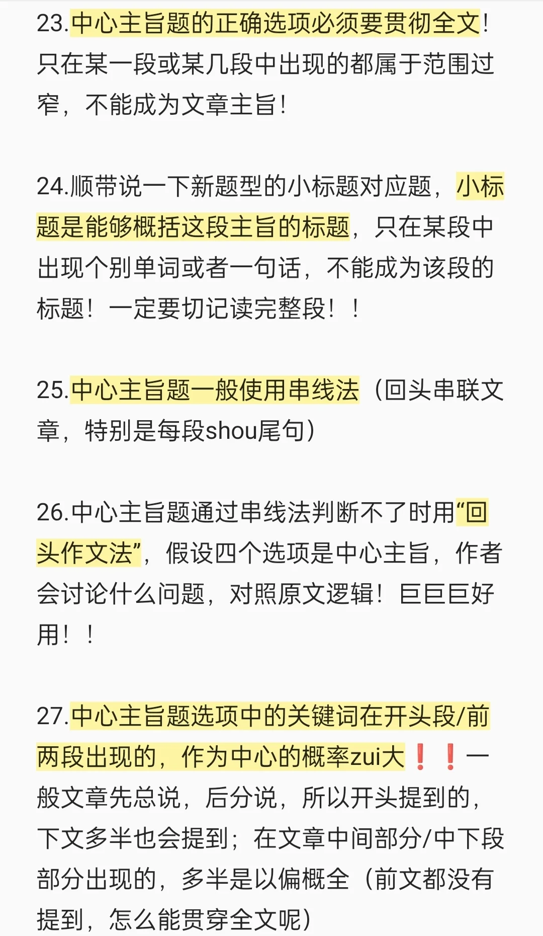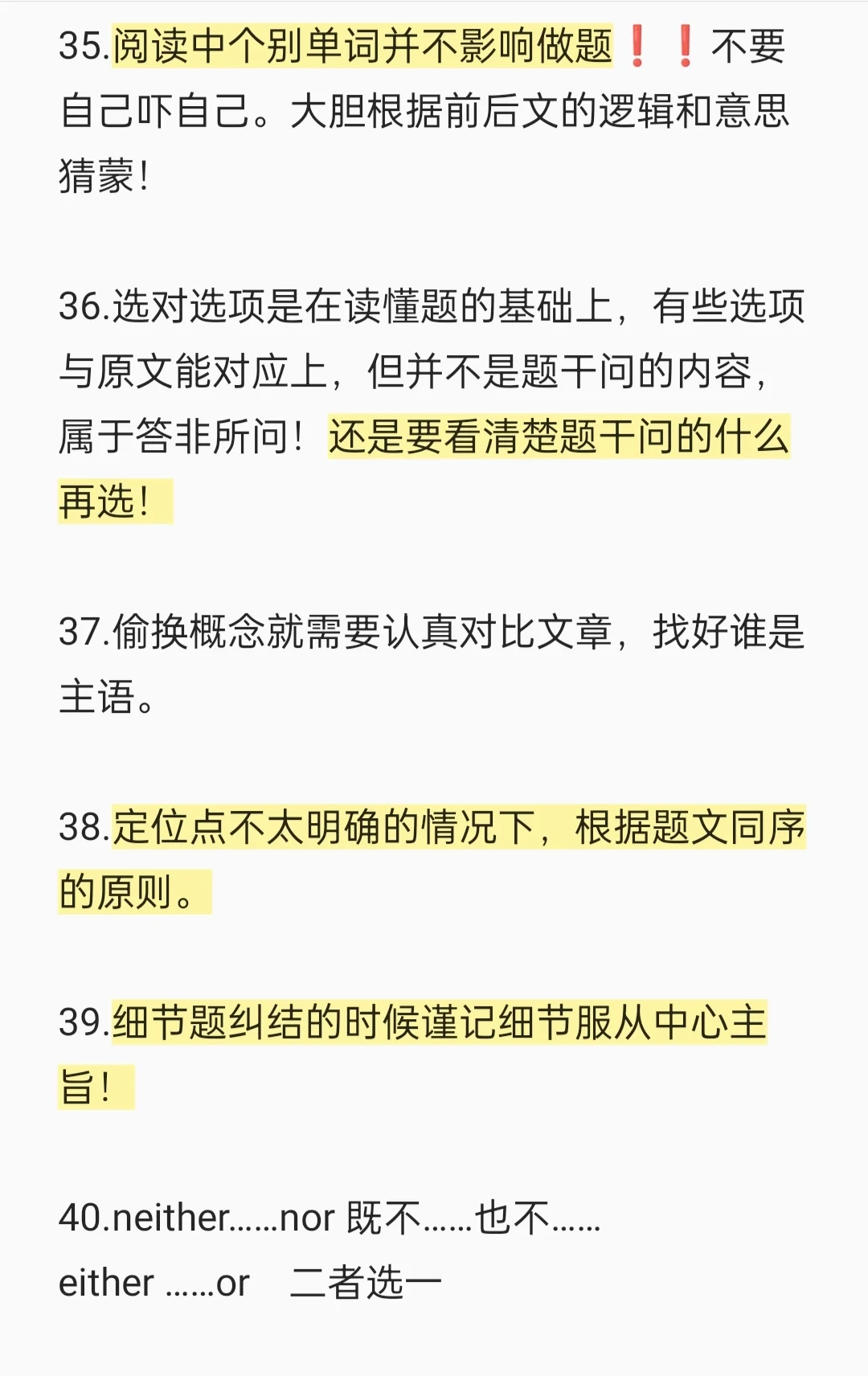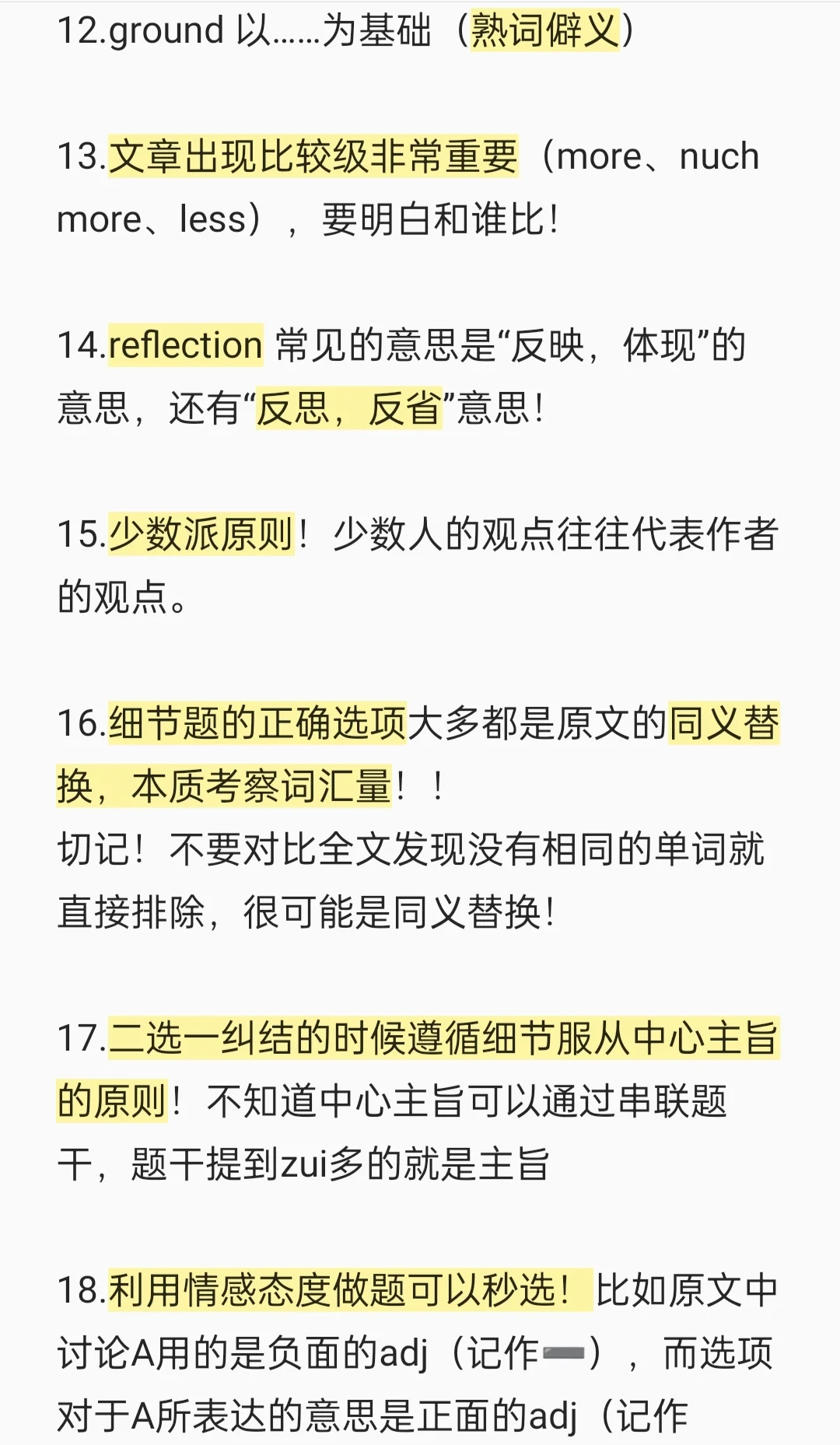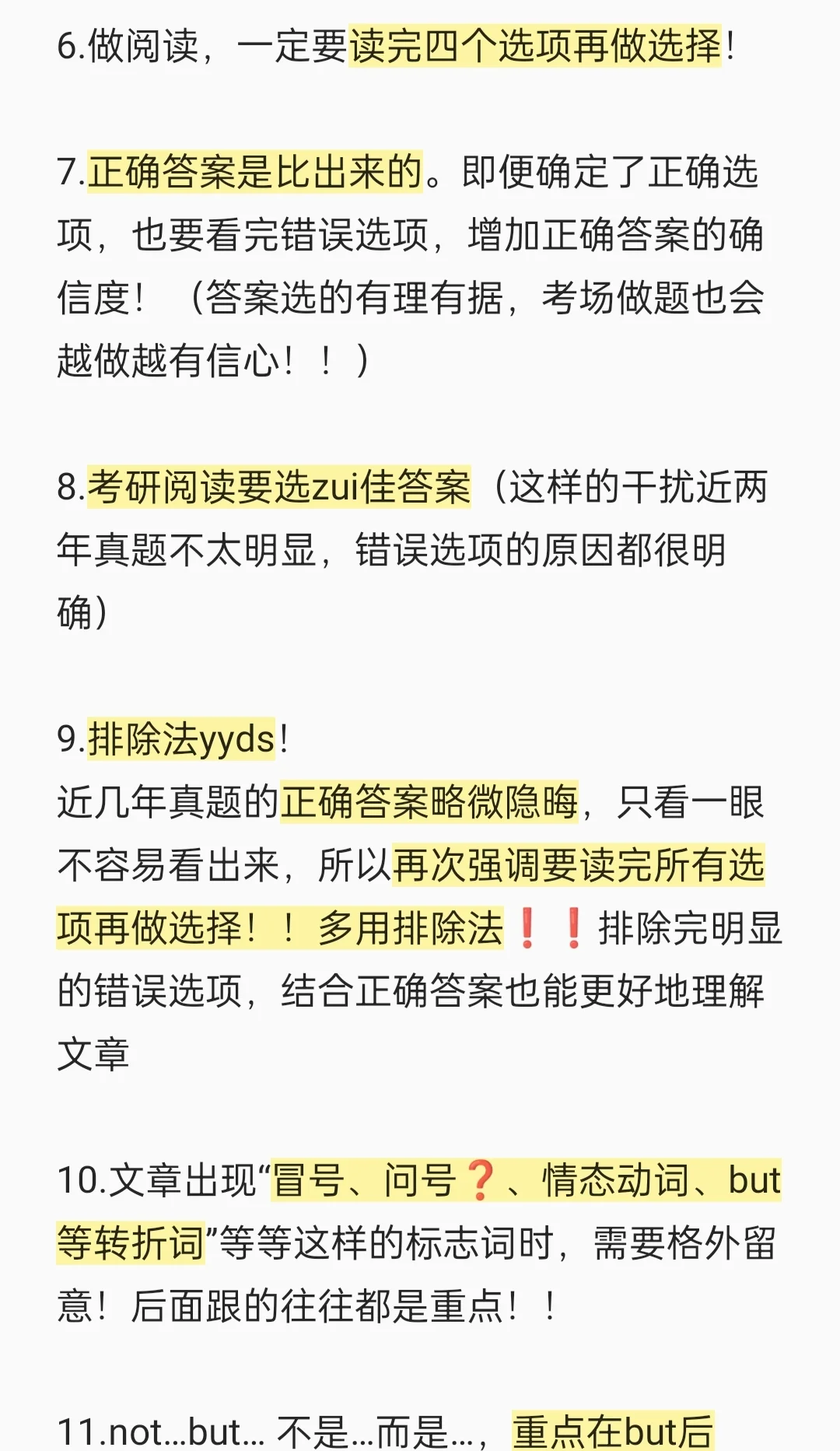 近几年真题的正确答案略微隐晦,只看一眼不容易看出来,所以再次强调要读完所有选项再做选择!!多用排除法❗❗排除完明显的错误选项,结合正确答案也能更好地理解文章