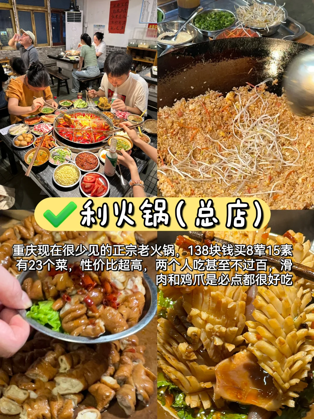 重庆的美食♨️真的数不胜数,每一顿都让人挑花了眼👀熬夜总结了本地人认可的烂棚棚老店✔️好吃无广💥 ✅利火锅(总店) ✅醉八仙热酒馆 ✅三样子甜品 ✅财二爷麻鸭(八一路好吃街) ✅华一坡蓉姐火锅(观音桥店) ✅莲藕抄手 ✅小金金手作 ✅老丘丘 ✅陈婆婆火锅(五一巷店) ✅灵珑糖水铺 ✅熨斗糕老烧饼 ✅眼镜凉虾 ✅洋河村·野火锅 ✅原醪糟民俗小吃
