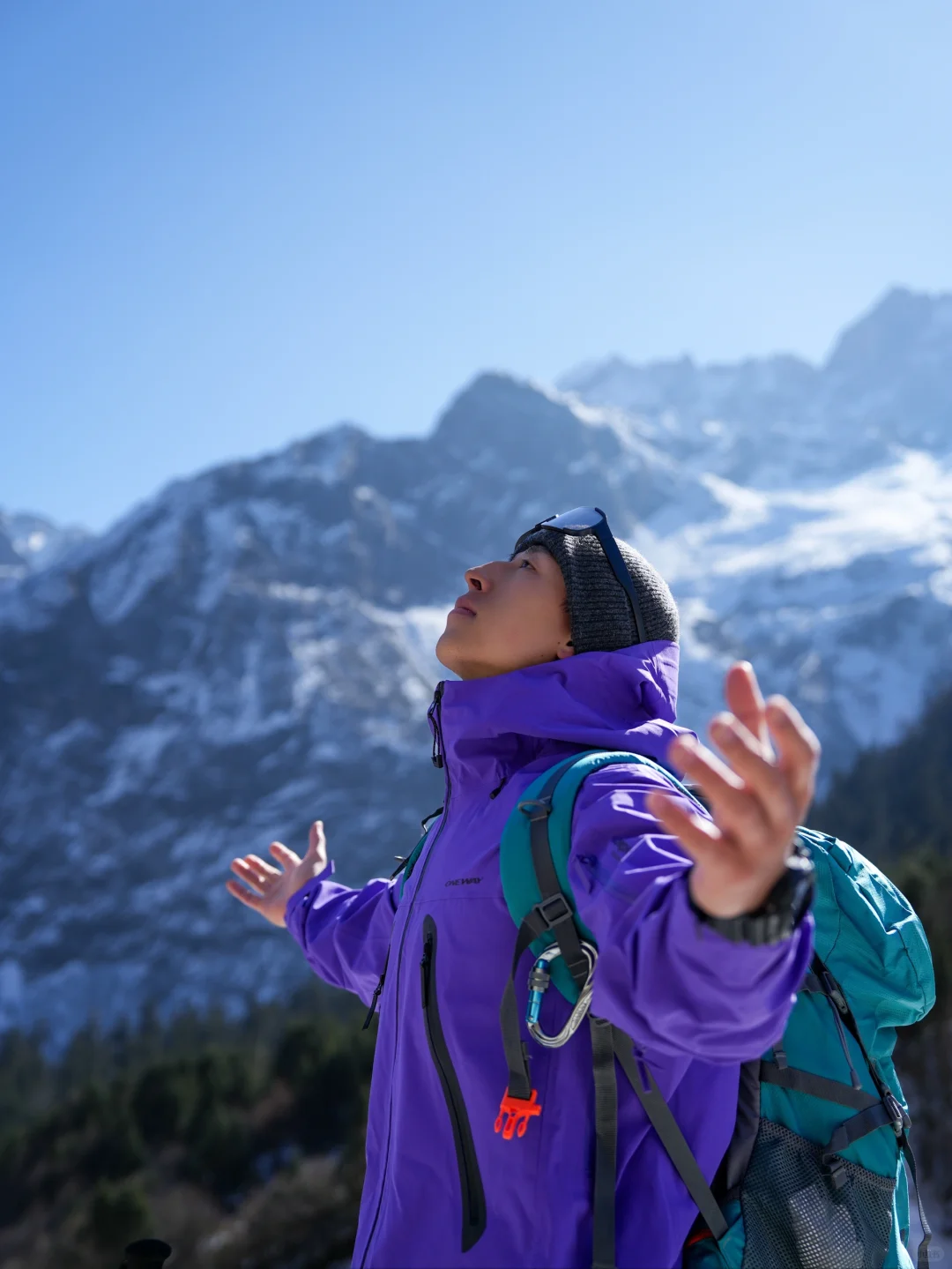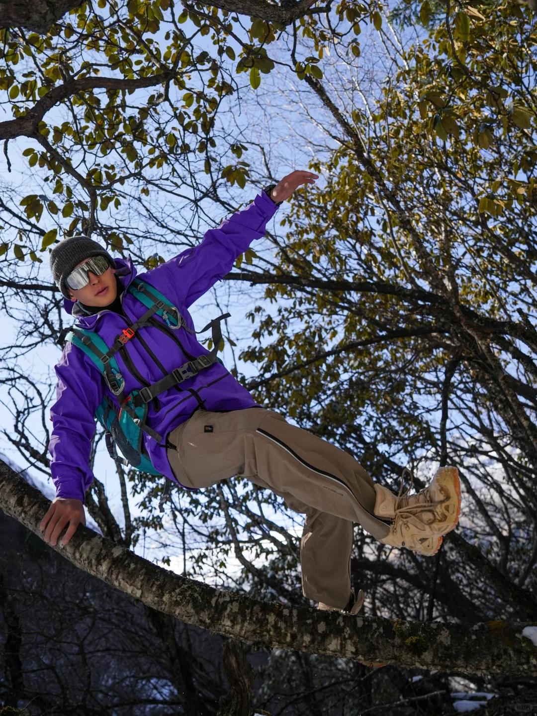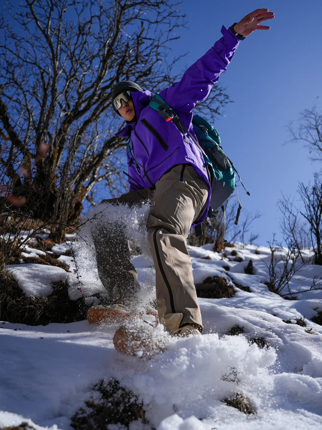 下身我搭配了同品牌TAPIO冲锋裤,全套都采用了ONE-Stormproof高性能防水透湿科技,静水压19000+,透湿8500+,很适合雪山环境,玩雪踩水都不用担心弄湿,轻松拿捏。