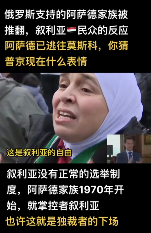 叙利亚人自由开心的一天,他们上街游行,上街庆祝,那个独裁者走了,他们自由了,所以他们上街庆祝。 评论区的中国网友可太逗了,只有巴沙尔获得了解放~获得了自由,再也不用担心你们吃饭问题,你们自己解决。