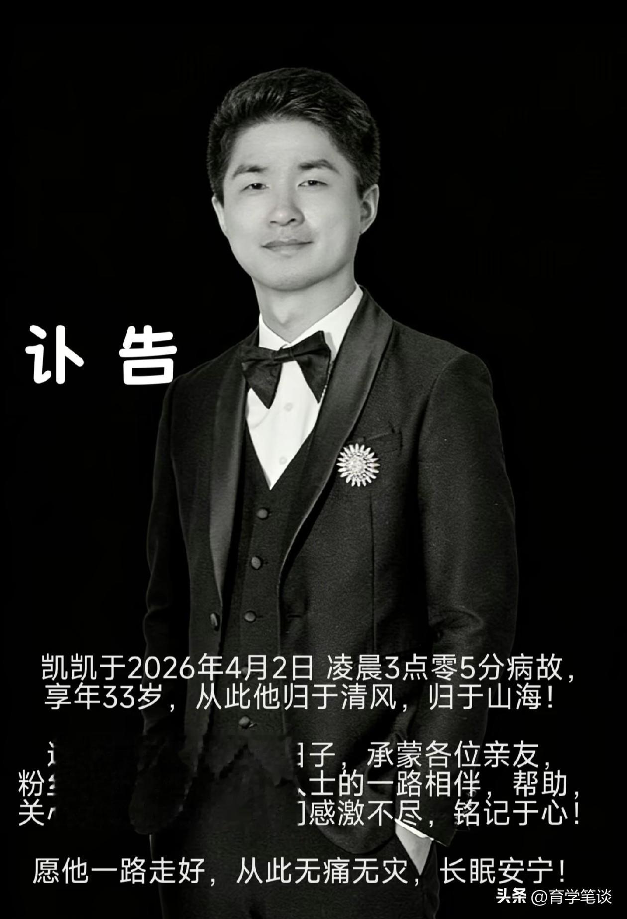 在讣告中,能看到江凯凯已于4月2日凌晨病逝,年仅33岁,妻子在讣告中向粉丝和爱心人士表达了谢意,画面凄凉,毕竟他们都还非常年轻,那个小家也才刚刚起步,活着的家人该如何面对?