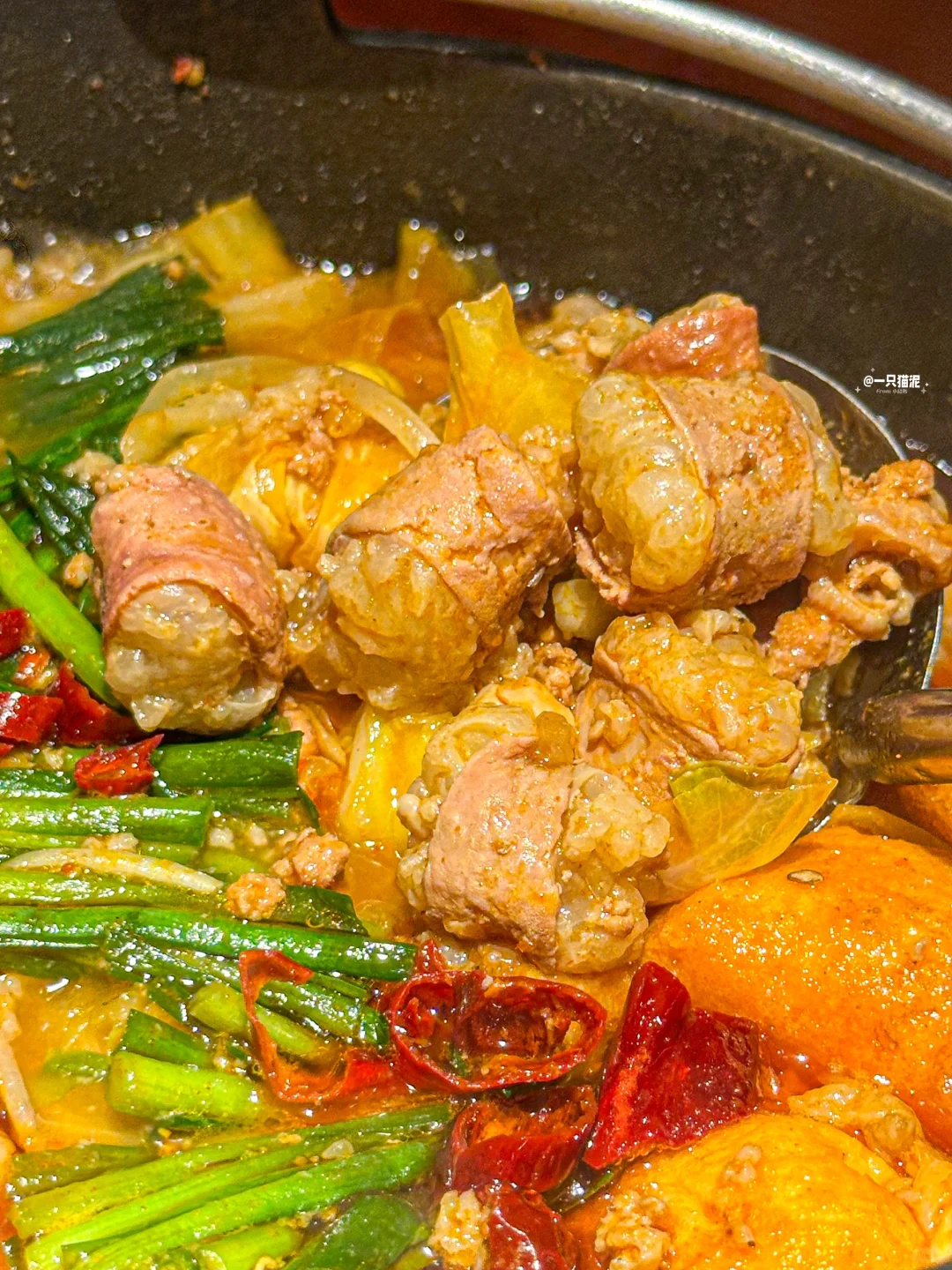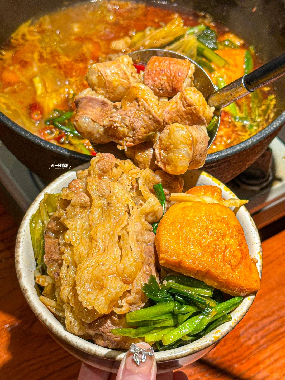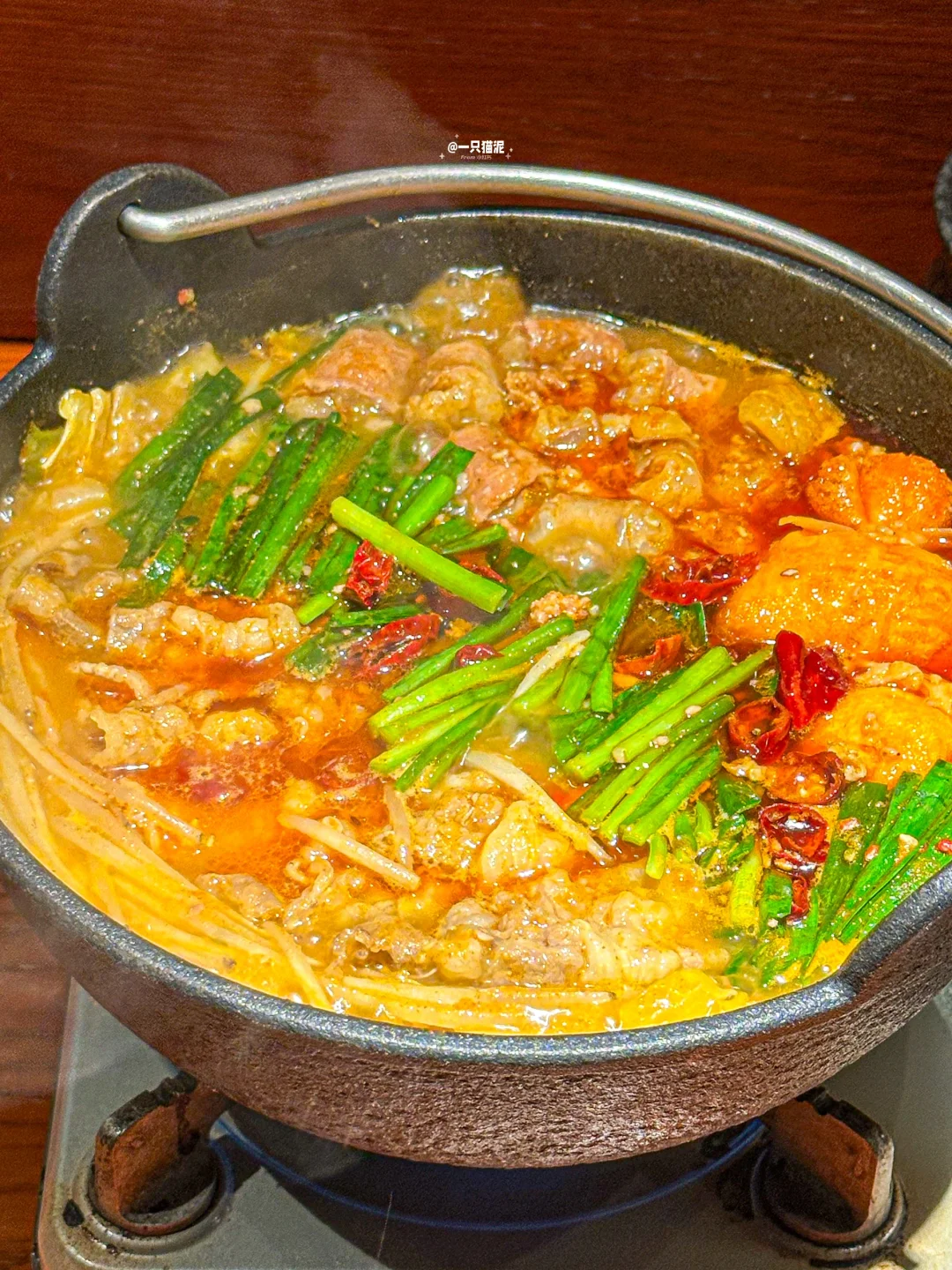 博多香辛双牛锅,牛肠油润不油腻🍖,牛五花肥瘦相间🥓,汤底浓郁鲜美🌶️,蔬菜越煮越有味🥬,哦一西!!