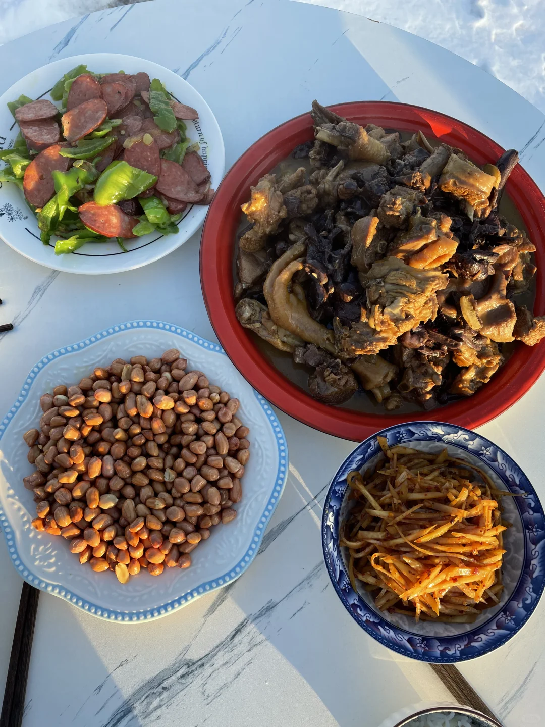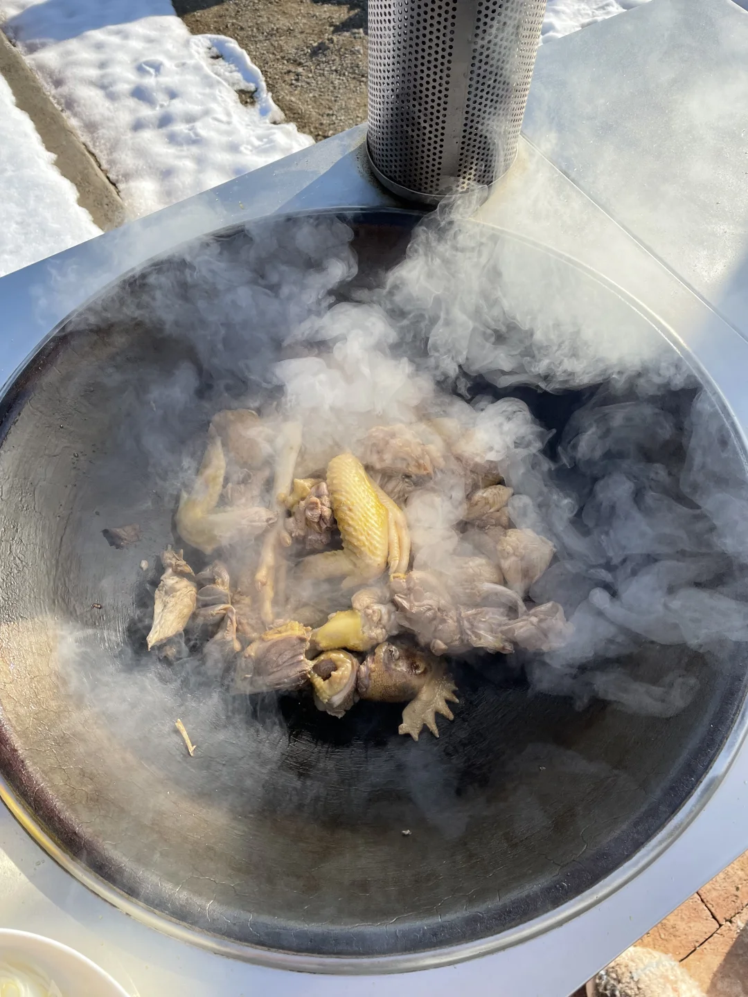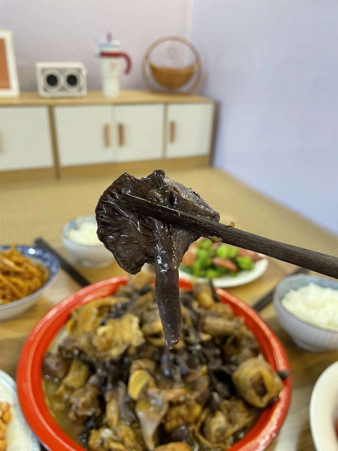 下雪天和铁锅炖最配啦 妈妈晚饭安排啦小鸡炖蘑菇 一整个香迷糊