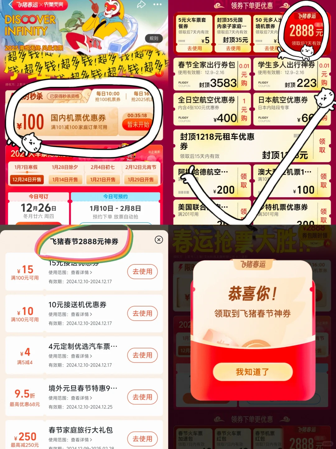 2️⃣领最高2888元的神券包,包含火车、飞机、酒店、接机、租车等。⚠️⚠️⚠️总有能用到的地方