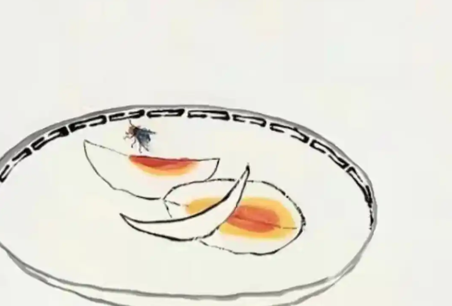 虽说这只苍蝇栩栩如生,但在鸭蛋旁画上这么个东西,在常人看来实在是有碍观瞻。