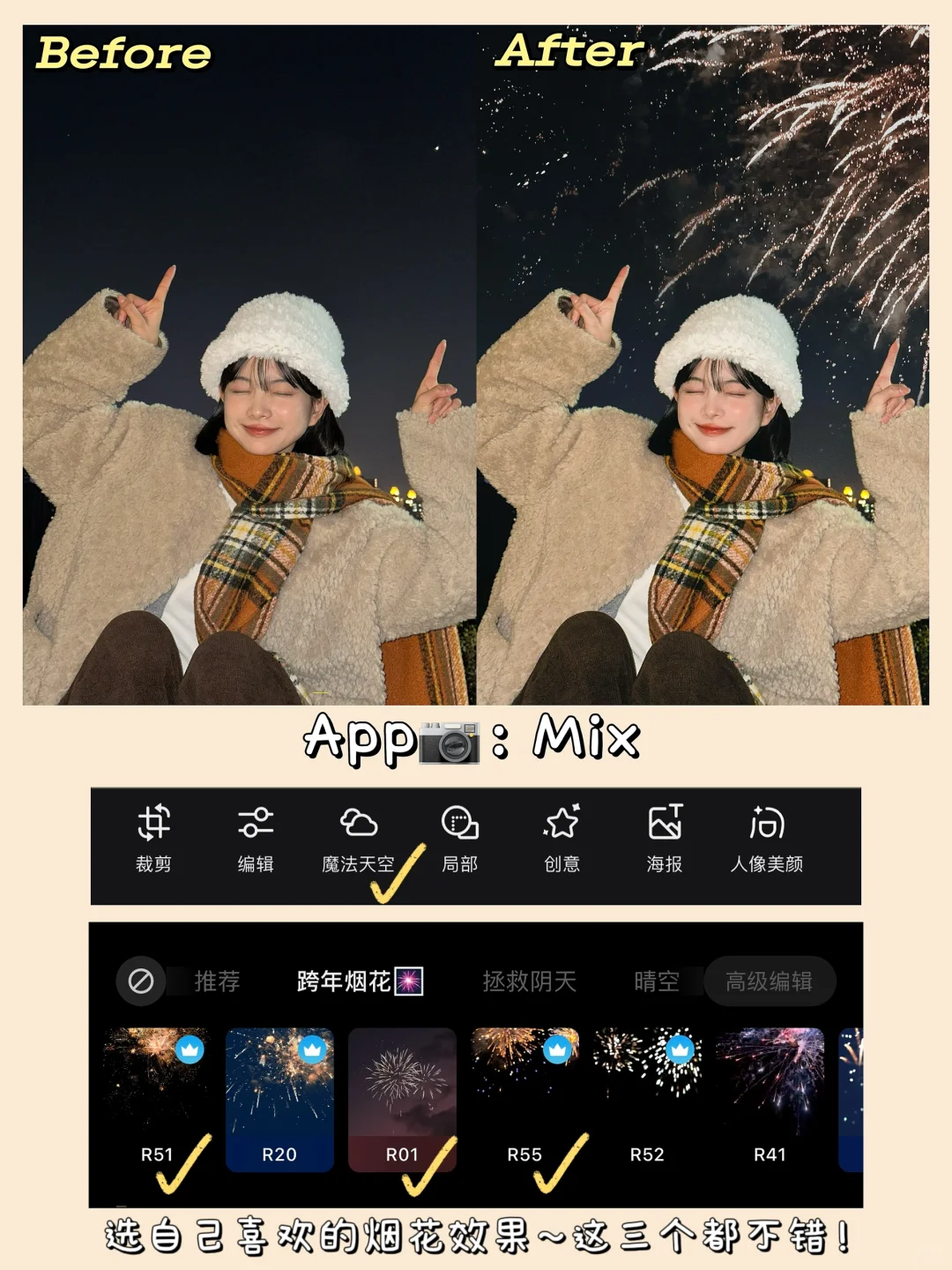 打开Mix 在魔法天空里选喜欢的烟花~