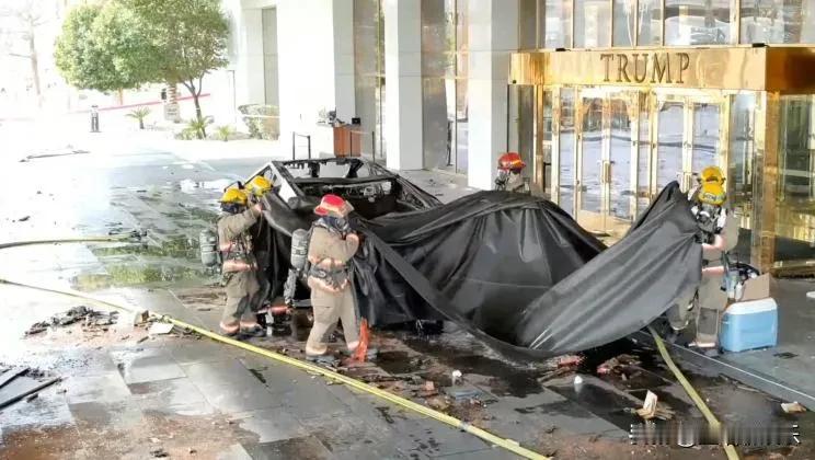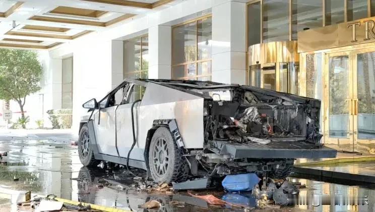 警方公布了特朗普酒店门口赛博皮卡爆炸后的内景照片,车里有烟花、油箱和燃料。 马斯克在X平台回应表示,这些恐怖袭击的人选错了车辆,特斯拉皮卡控制了爆炸的方向川普酒店玻璃门完好无损。