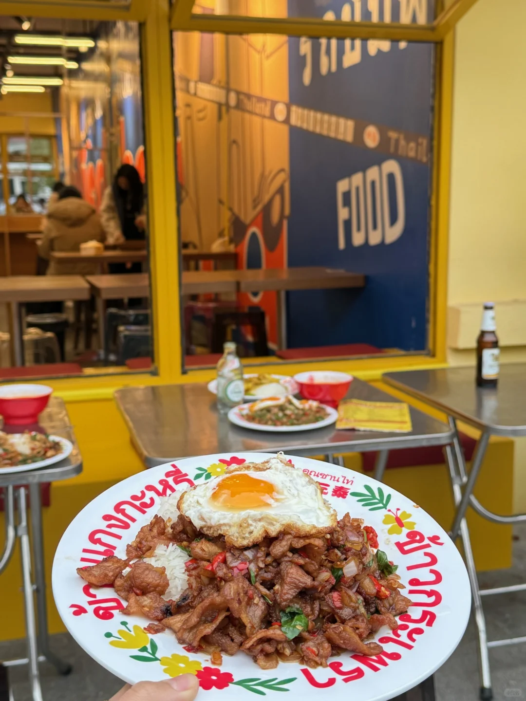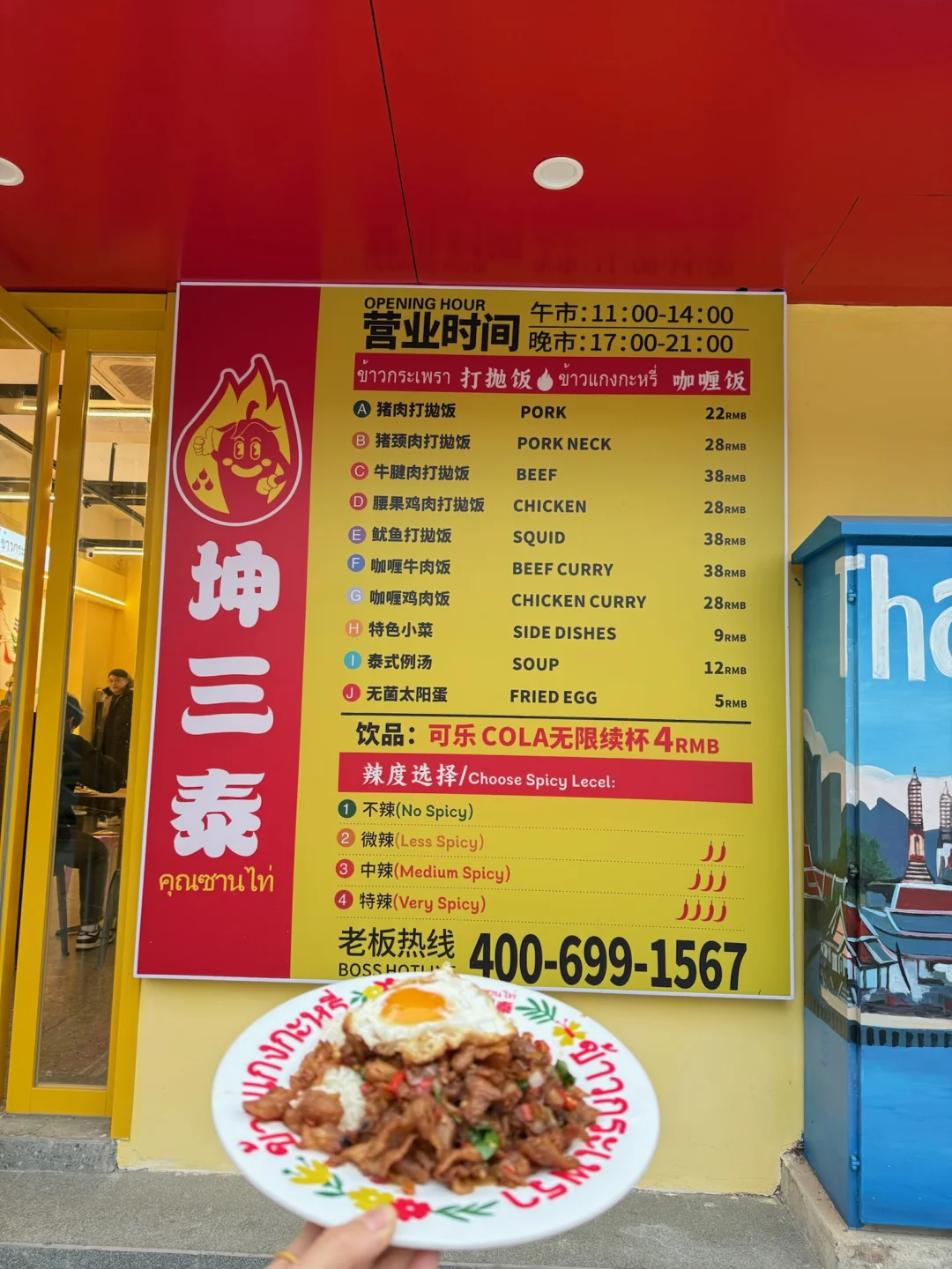 在699的里面!这家新开的泰式打抛饭别太正宗! 人均20➕平价又好吃!! 吃的一口接一口!停都停不下来🤤 猪肉打抛饭是我的醉爱!猪肉碎拌饭!那味道!!好吃的我只能用啊啊啊来形容🥹还有4r的汽水自助!!姐妹们一定要去试试!!! 📍 坤三泰77巷