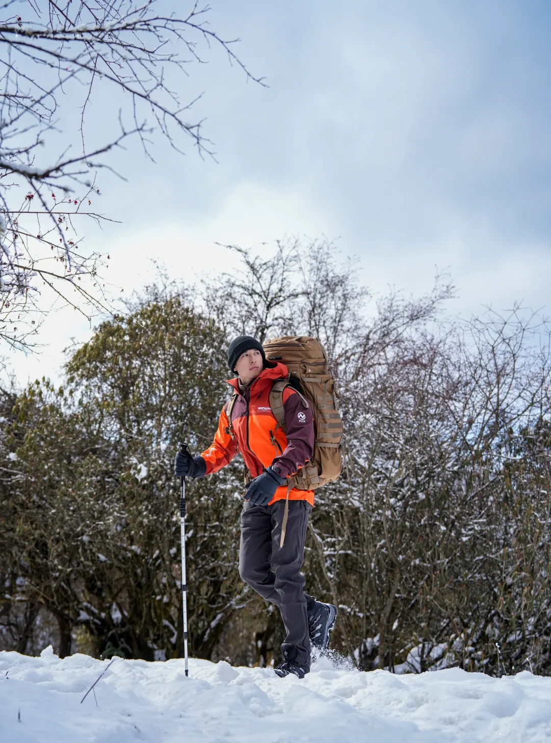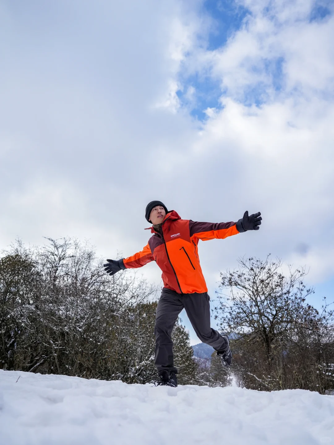 即使一整年都没能再见川西的雪景,但每次踏上这片土地,心中的快乐总是如约而至。户外世界的魅力,对我而言,从未有丝毫减退。当然,如果你也想体验这份迷人的平衡感,一件合适的冲锋衣绝对是必不可少的装备。我这次选择的诺诗兰飓风冲锋衣,赤岩色拼色设计,就像川西那片绚烂的彩林一样,格外引人注目。三层GORE-TEX 面料不仅确保了出色的户外功能性,防风、防雨、透气都不在话下,而且细节设计也极为贴心,比如腋下的拉链、帽子和下摆的抽绳调节,都让人感受到了品牌的匠心独运。作为专注徒步50年的奥地利品牌,诺诗兰确实名不虚传。